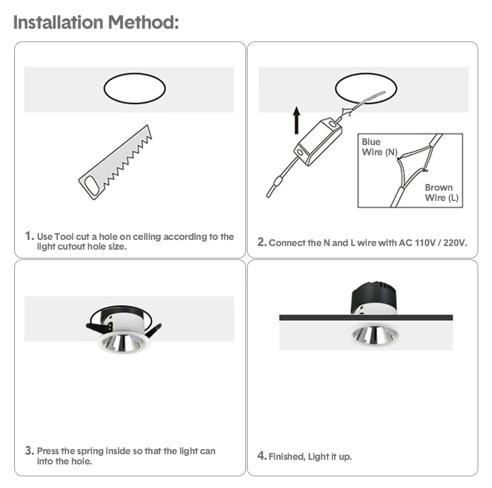 【Легко установить 】 3 размера, Вырежьте отверстие на потолке в соответствии с размером выреза света. Поставляется со светодиодным трансформатором, поддерживает AC85-265V, Диммируемые и не Диммируемые версии. Диммируемый-это Диммирование triac (диммерный переключатель не входит в комплект).