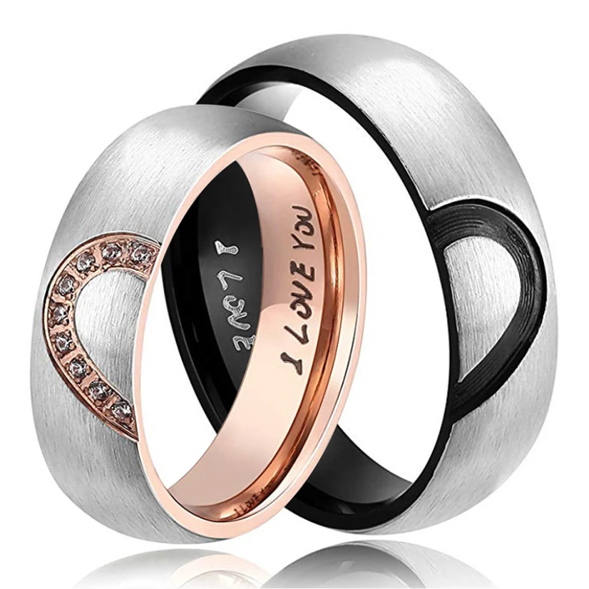 Парное кольцо из титановой стали с полусердечком, обручальное кольцо в стиле панк, ювелирные изделия из нержавеющей стали, женские подарки для девочек