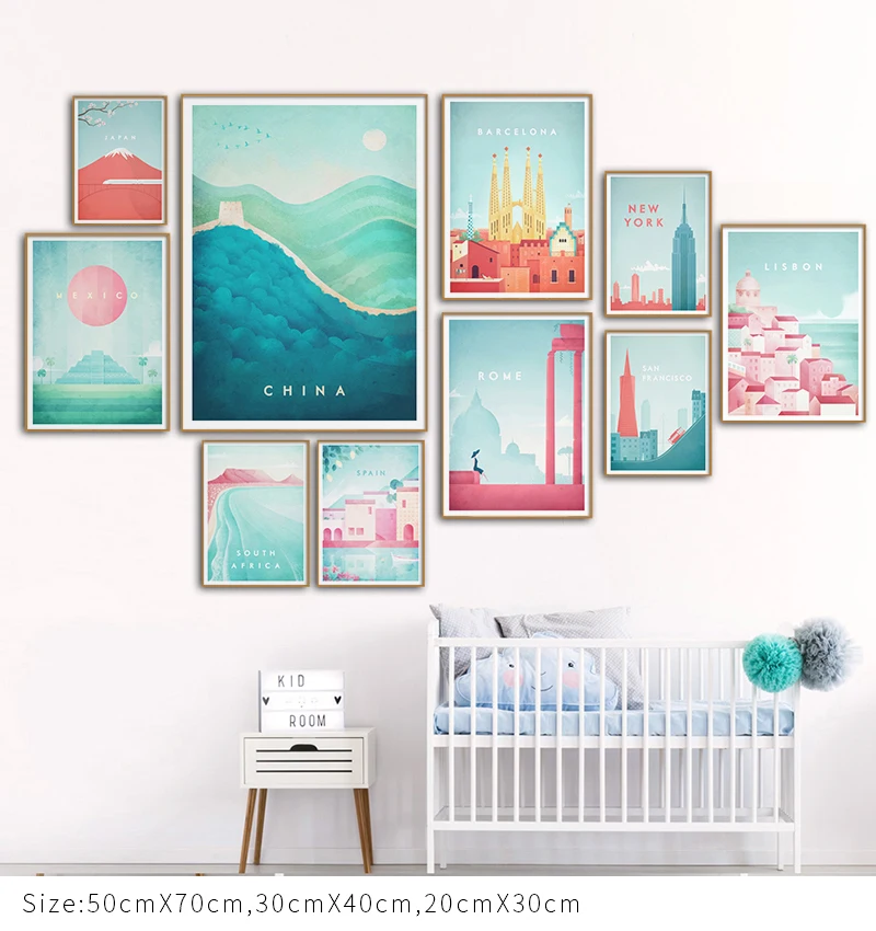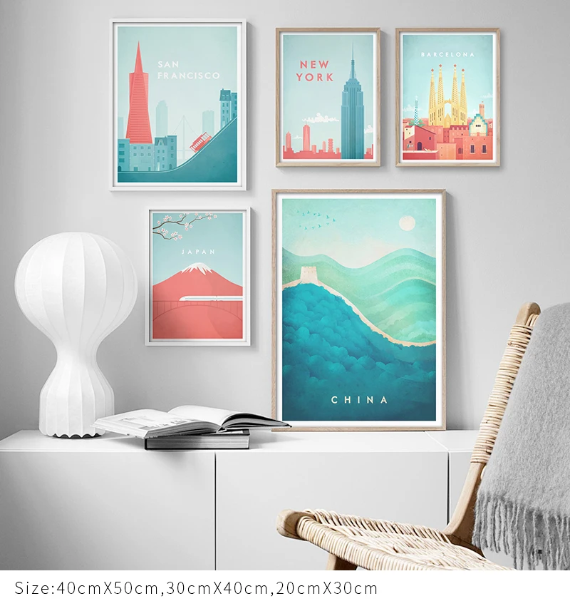 Картина на холсте пейзаж города мира Рим Япония Испания Нью-Йорк плакат печать в скандинавском стиле Настенная картина для спальни домашний декор