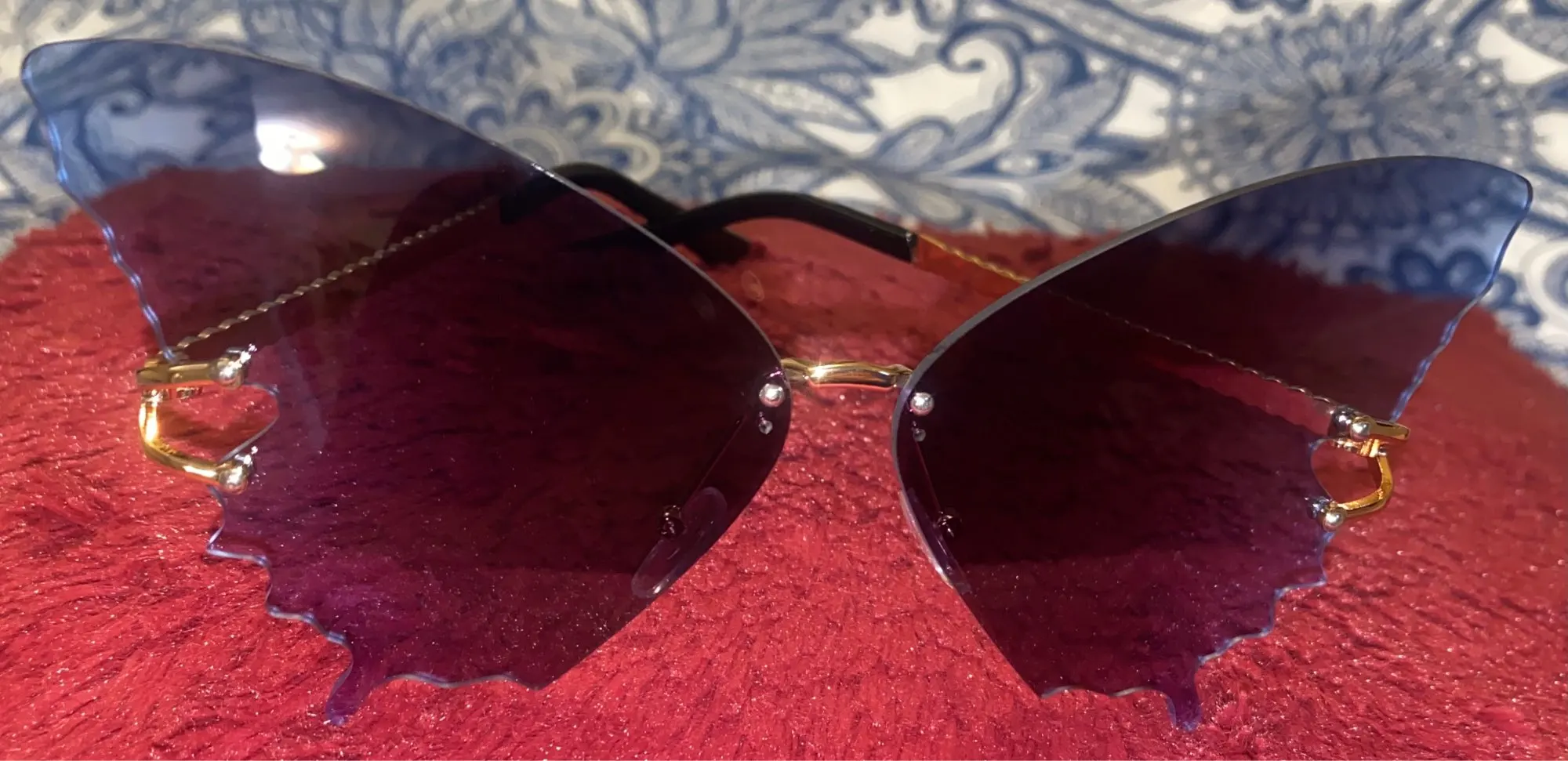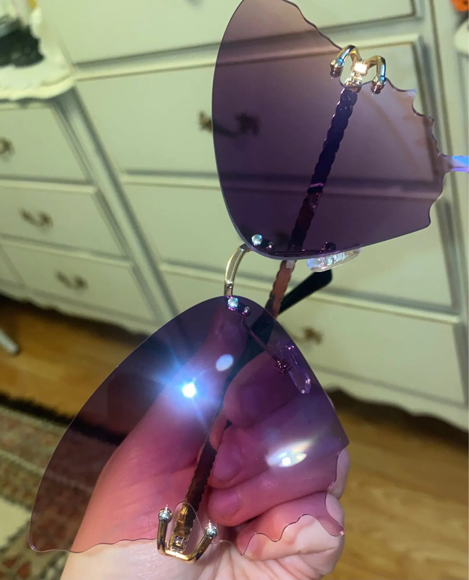 Женские солнцезащитные очки с бабочкой, Винтажные Солнцезащитные очки без оправы, с защитой от ультрафиолета, 2021