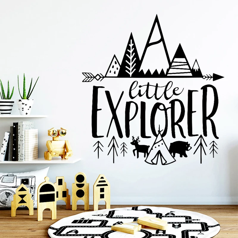 Скандинавская Настенная Наклейка Little Explorer, декор для детской комнаты, приключения, виниловые наклейки, украшение для мальчиков, Детская лесная роспись