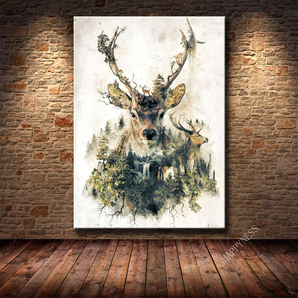 Пейзаж рисунок оленя на холсте скандинавский Стиль минималистский лес печати плакатов Wall Art Гостиная украшения icon star icon star icon star icon star icon star