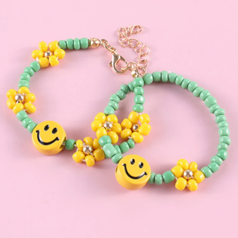 Makersland, браслет с бусинами и улыбкой для детей, браслет дружбы с цветами, милые аксессуары для принцесс, ювелирные изделия, подарки, новинка 2020