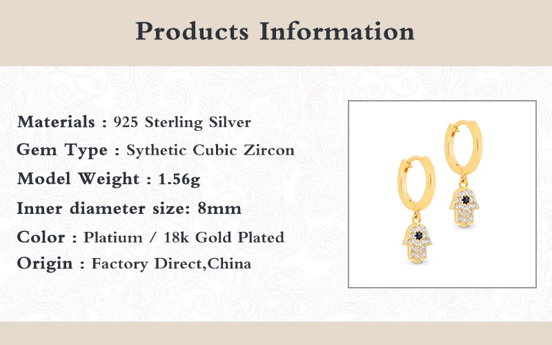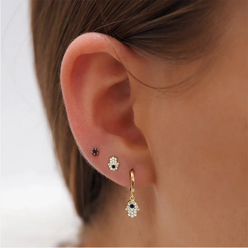 Женские Висячие сережки из стерлингового серебра 925 пробы с подвеской Хамса на руку с ладонью и черным кристаллом циркония