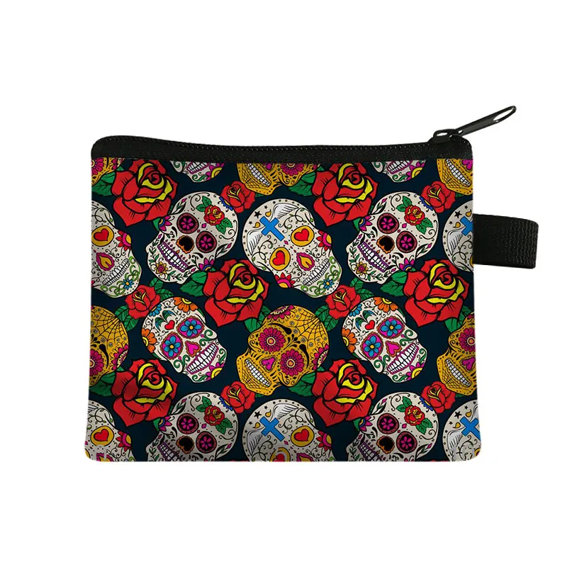 Кошелек для монет в готическом стиле для девочек, портативная миниатюрная дамская сумочка для покупок с принтом черепа, мультяшный кошелек для девочек, чехол для ключей