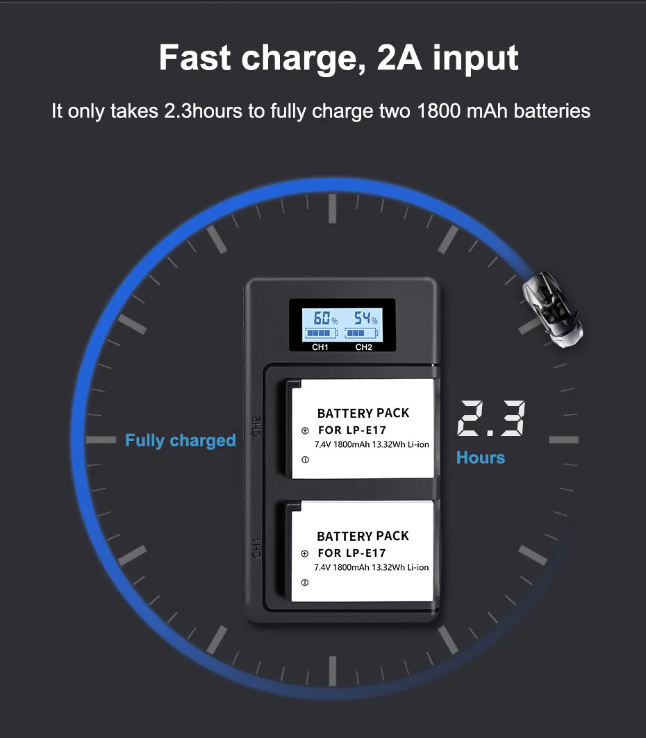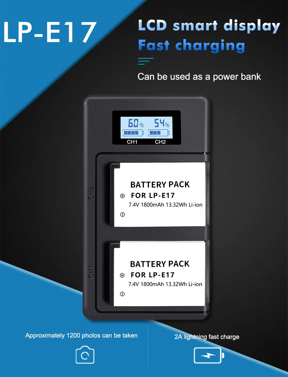 LPE17 LP E17 LP-E17 Батарея + ЖК-дисплей USB Dual Зарядное устройст...