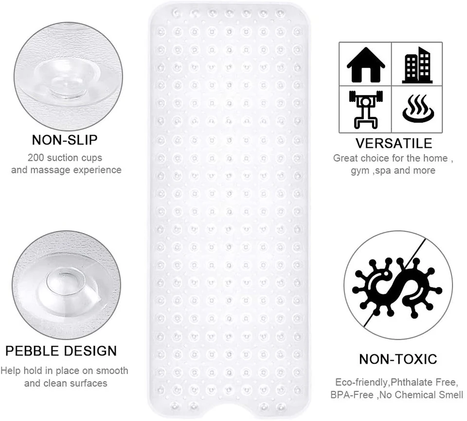 Удлиненный Противоскользящий Коврик для ванны, коврик для ванной и душа прозрачный Антибактериальный, машинная стирка, для ванной, для детей, малышей, пожилых
