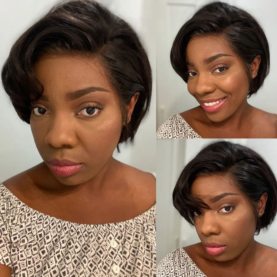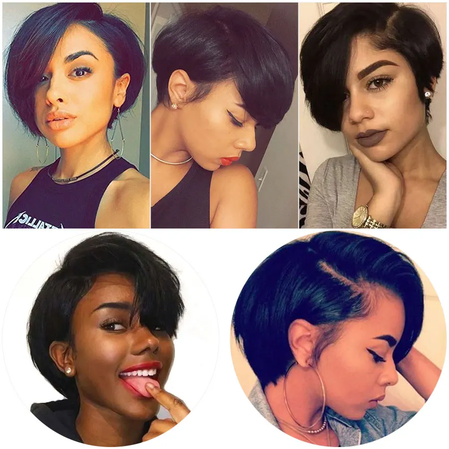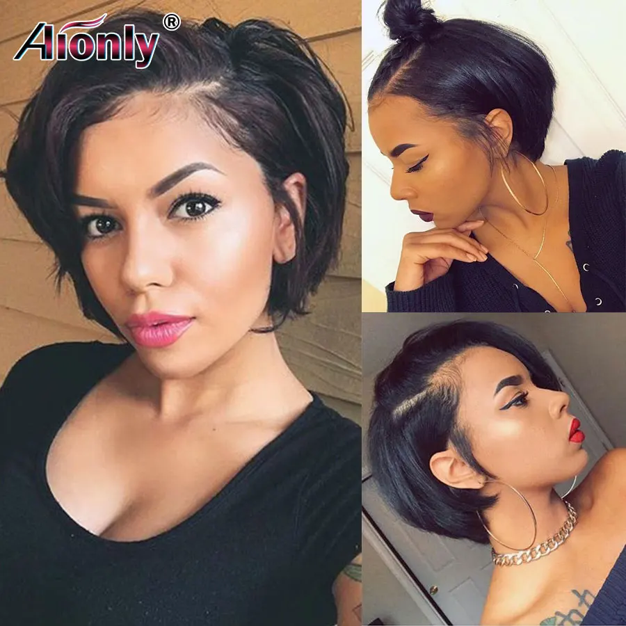 Парик из человеческих волос на сетке 4*4, парик на сетке, прямые волосы естественного цвета, бразильские волосы без повреждений для черных женщин, короткие волосы Alionly