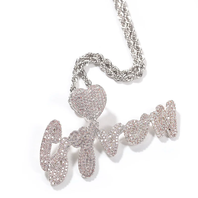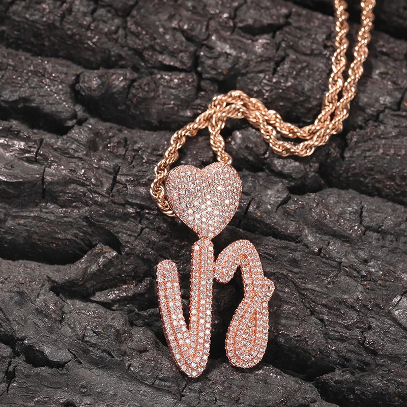 Заказное имя с сердечком застежка e подвески-буквы хип-хоп медь оже...