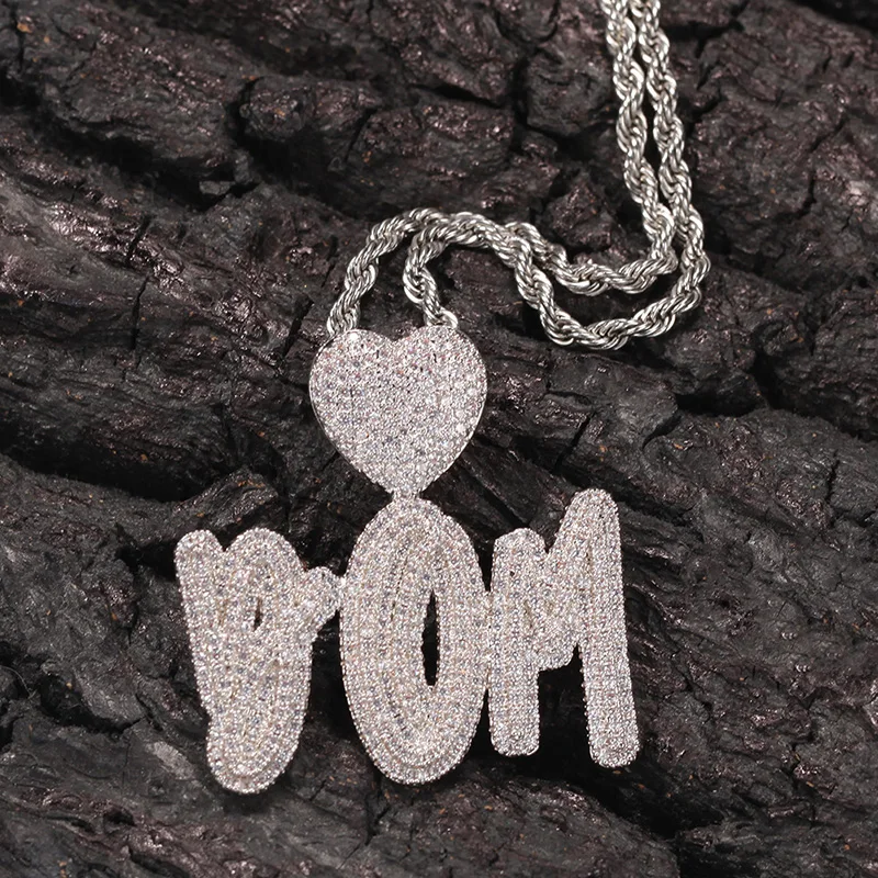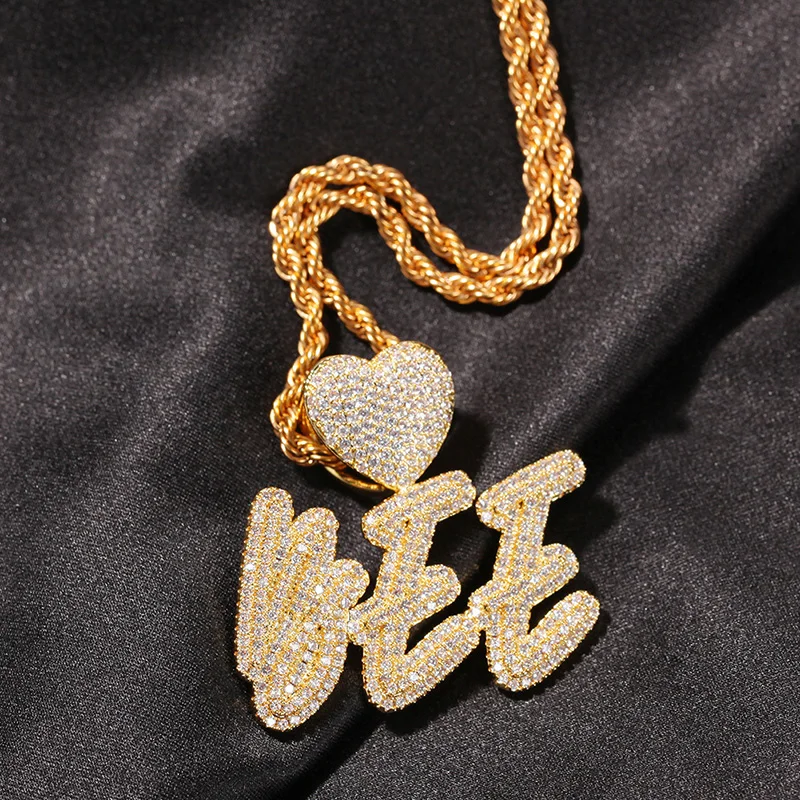 Индивидуальные мужские ожерелья с подвесками в виде сердца и букв с именем, ожерелья в стиле хип-хоп с фианитами, камни, украшения с блестками, украшения в стиле рэпера, Прямая поставка