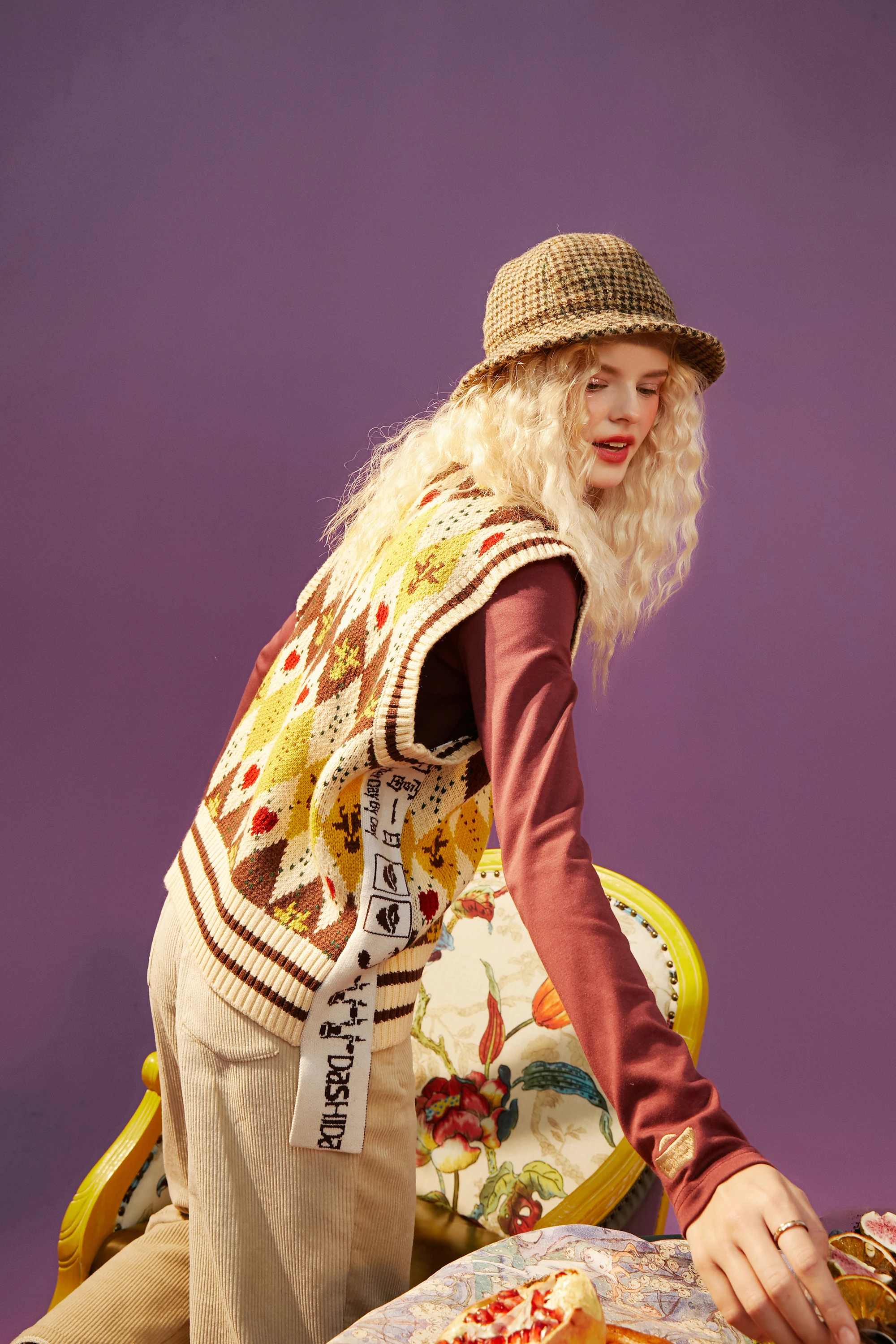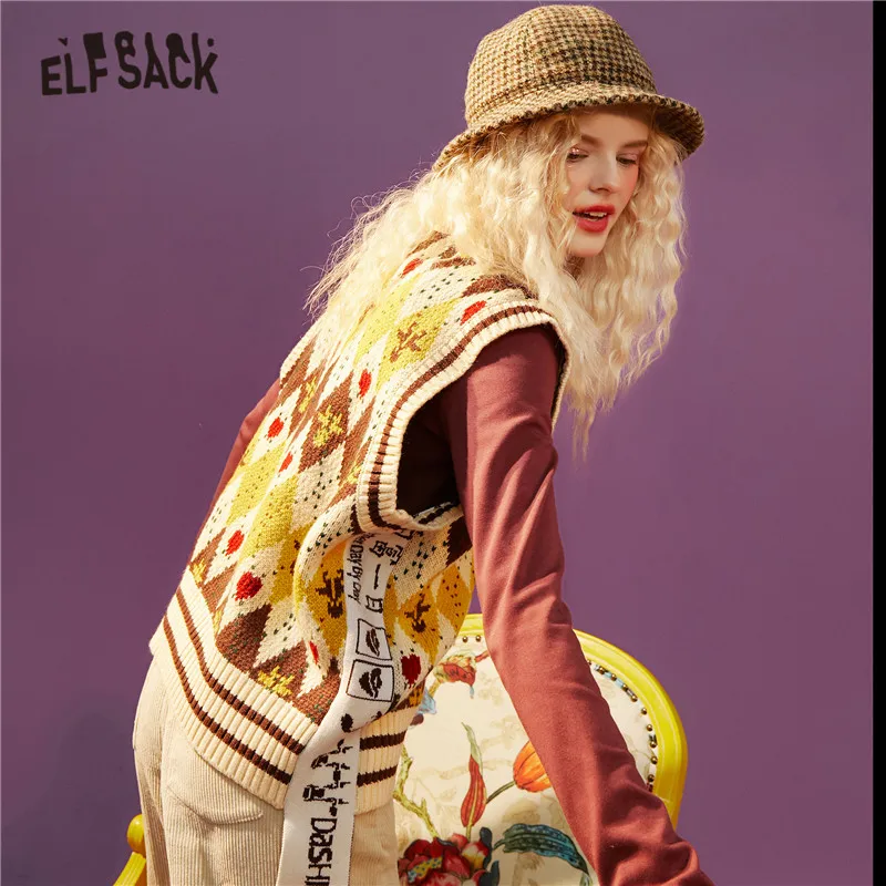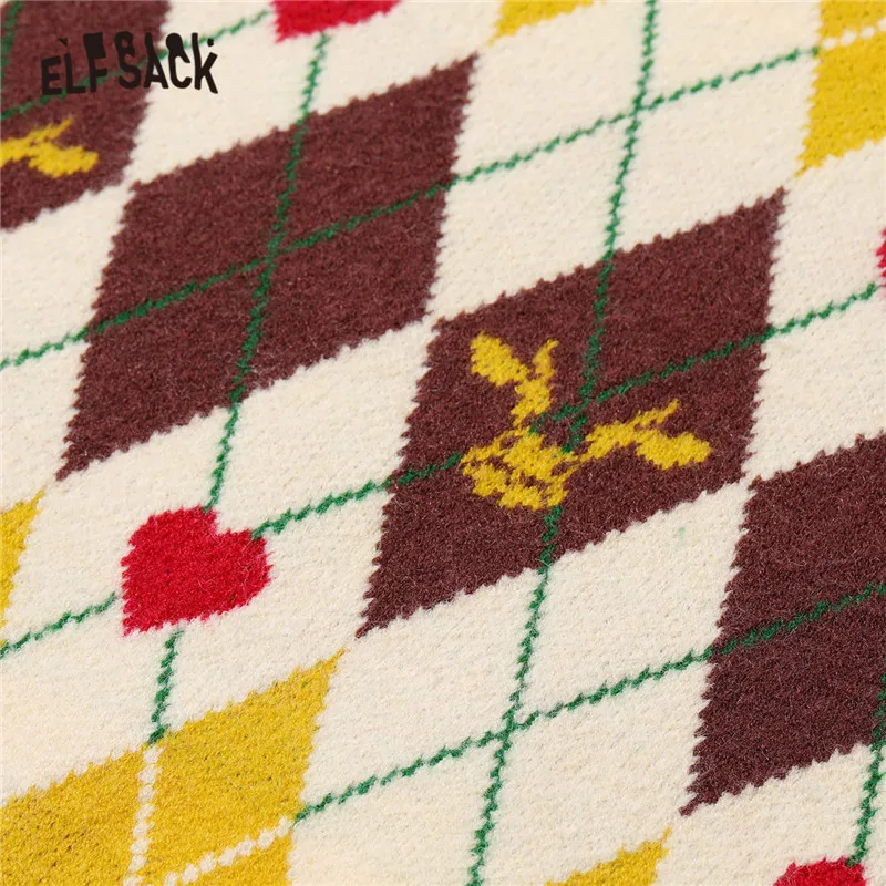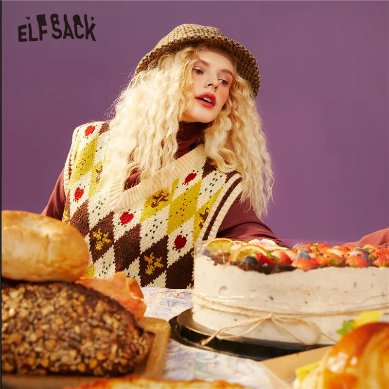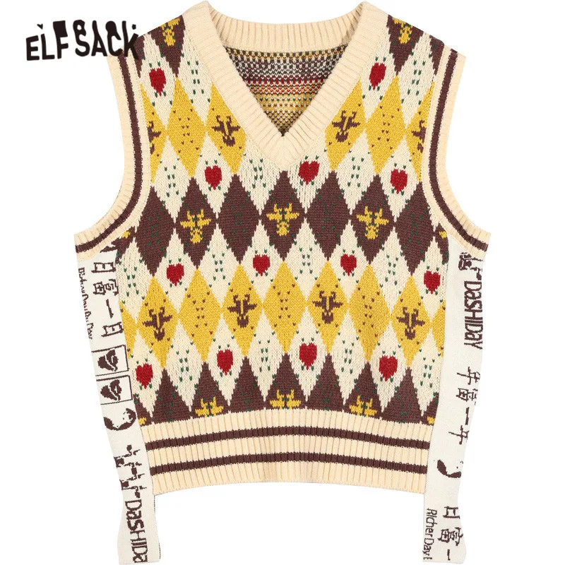 Женский Жаккардовый трикотажный пуловер ELFSACK Harajuku Argyle, повседневный жилет-свитер с v-образным вырезом без рукавов на зиму 2021