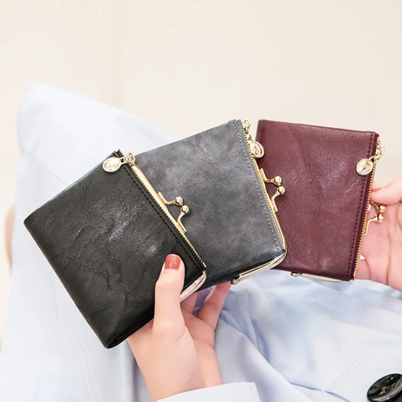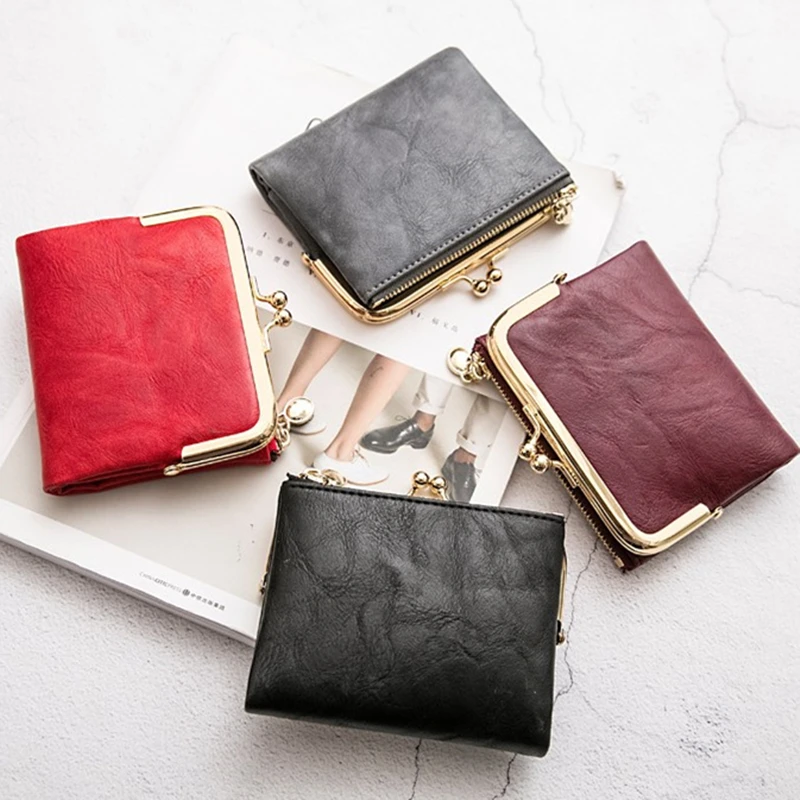 Модный женский квадратный короткий кошелек из искусственной кожи, держатель для карт, металлический золотой кошелек с застежкой, многоцветный винтажный женский клатч