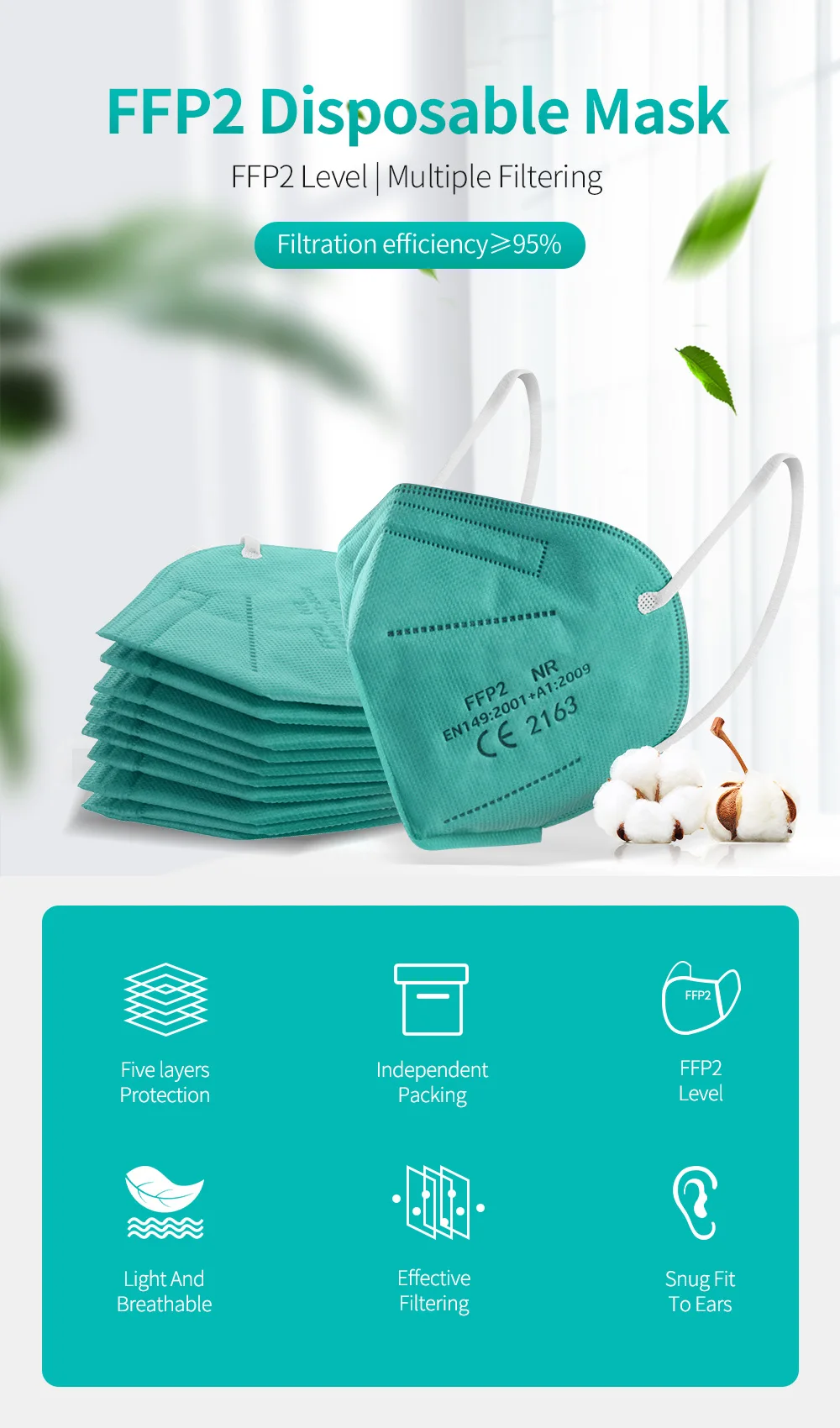 Зеленая маска ffp2многоразового использования FFP2, защитная маска ...