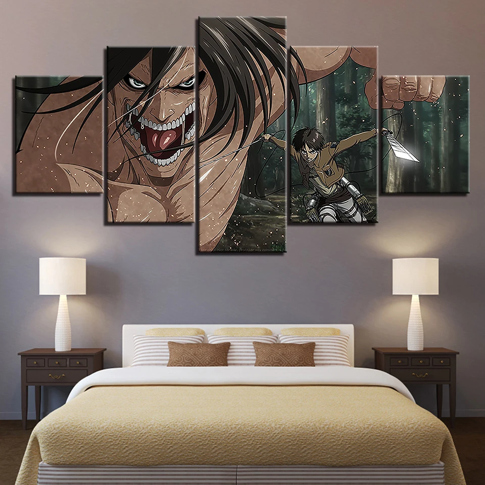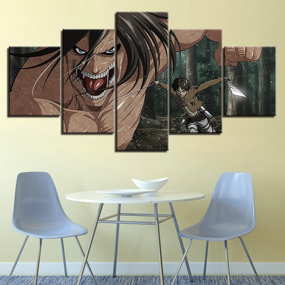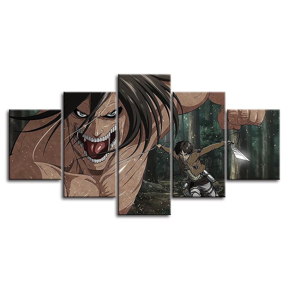 Плакат из аниме атака на Титанов Эрена йера, 5 шт., холст с HD-печатью, Настенная картина Модульная для гостиной, домашний декор