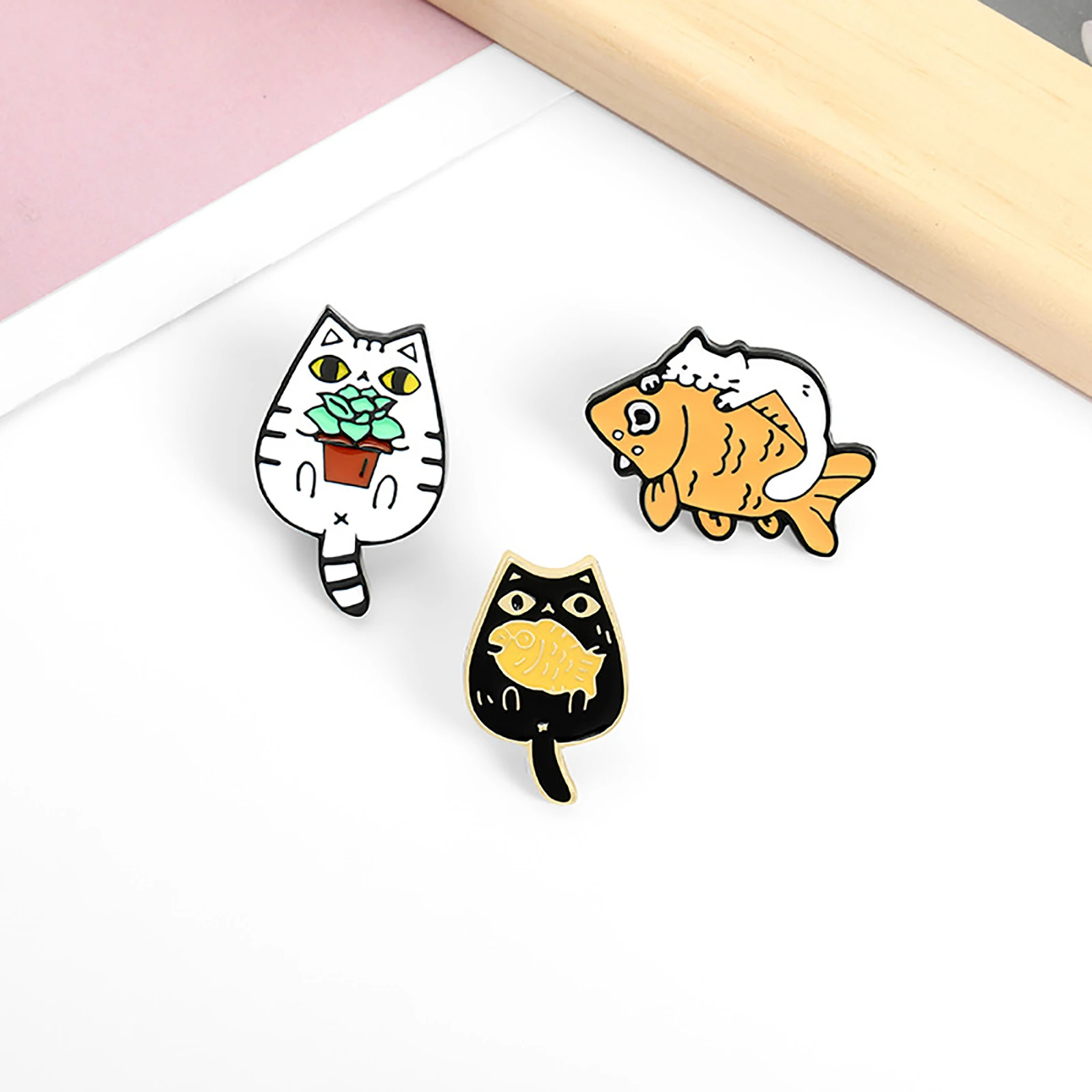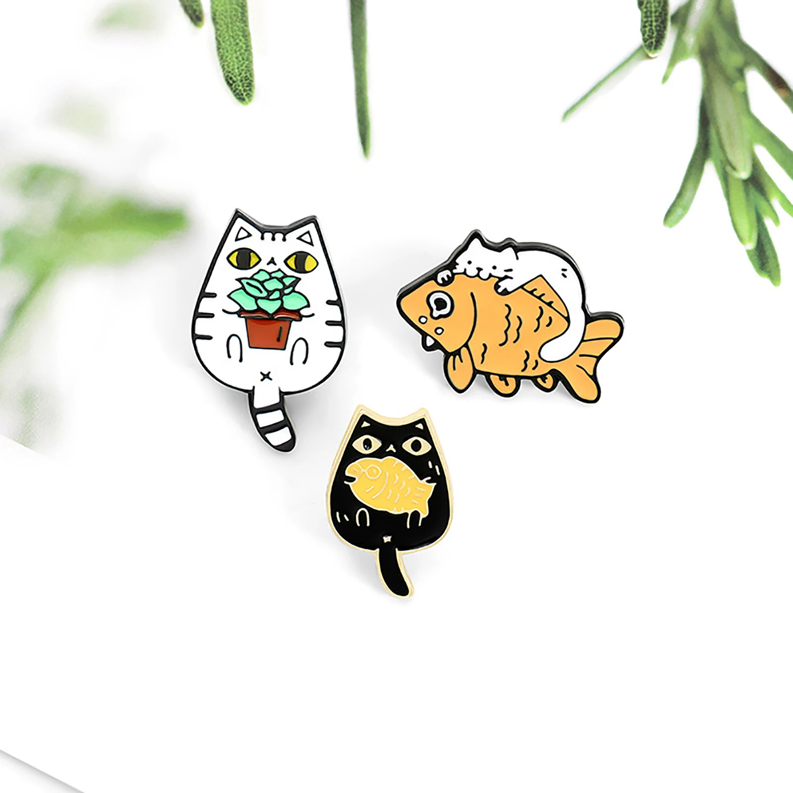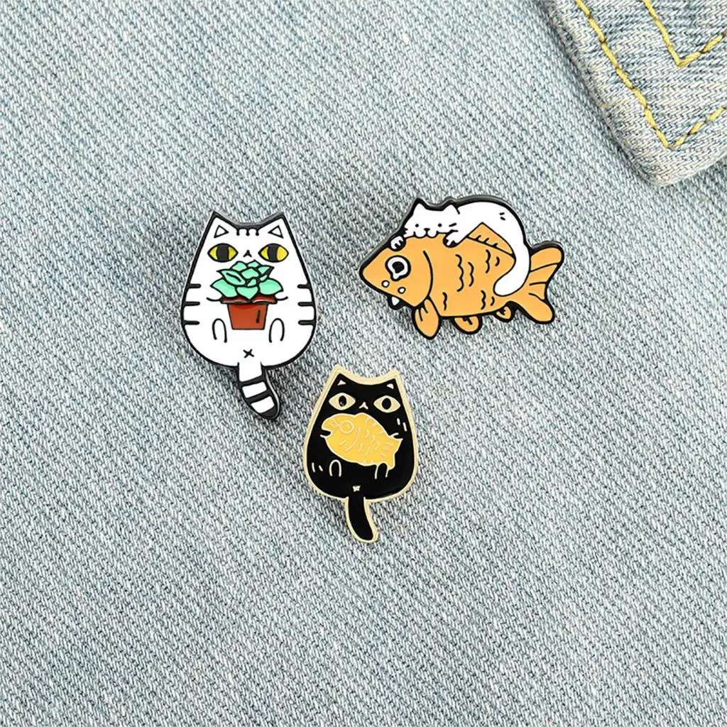 Эмалированные значки на булавке в виде милых кошек, золотых рыбок, ...