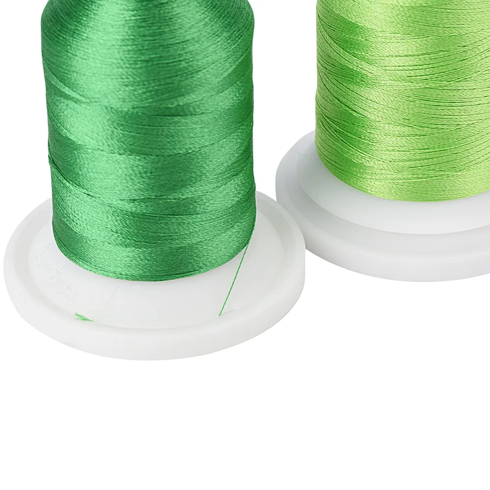 ★40 катышков в комплекте + Таблица цветов + нейлоновая нить (помогает сохранить вашу катушку после того, как вы снимите пластиковую крышку)-40 катышков, большое разнообразие ярких и красивых цветов, полиэфирная вышивка, нить для осветления и украшения всех видов ваших проектов вышивки. Используя цветовую таблицу, чтобы найти аналогичный номер цвета брата и имя, также доступна диаграмма преобразования Мадейры. ★Идеальный вес и длина-каждая катушка имеет 40 WT и 500M(550Y) длину, что делает эти катушки полиэфирной вышивки машины нитью идеальной для всех видов ваших проектов вышивки. Нити идеально подходят для машин Brother, Babylock, Janome, Singer, Pfaff, Husqvarna и Bernina. ★Отличная прочность на растяжение-более низкие риски разрыва или износа, эластичность и прочность полиэфира также снижают риск вытягивания и выщипывания полиэфирной вышивальной машинной нити. ★Высокая устойчивость к цвету-нить для вышивальной машины из полиэстера удерживает цвета даже в случае коммерческого отмывания, отбеливания и других жестких химических веществ, желательные особенности для рабочей одежды, униформы и белья, которые часто подвергаются отмыванию в коммерческих целях. ★Защелкивающиеся конусы-Вам не нужны сети для резьбы или обхваты резьбы для покрытия резьбы. Конус может хорошо защитить резьбу.