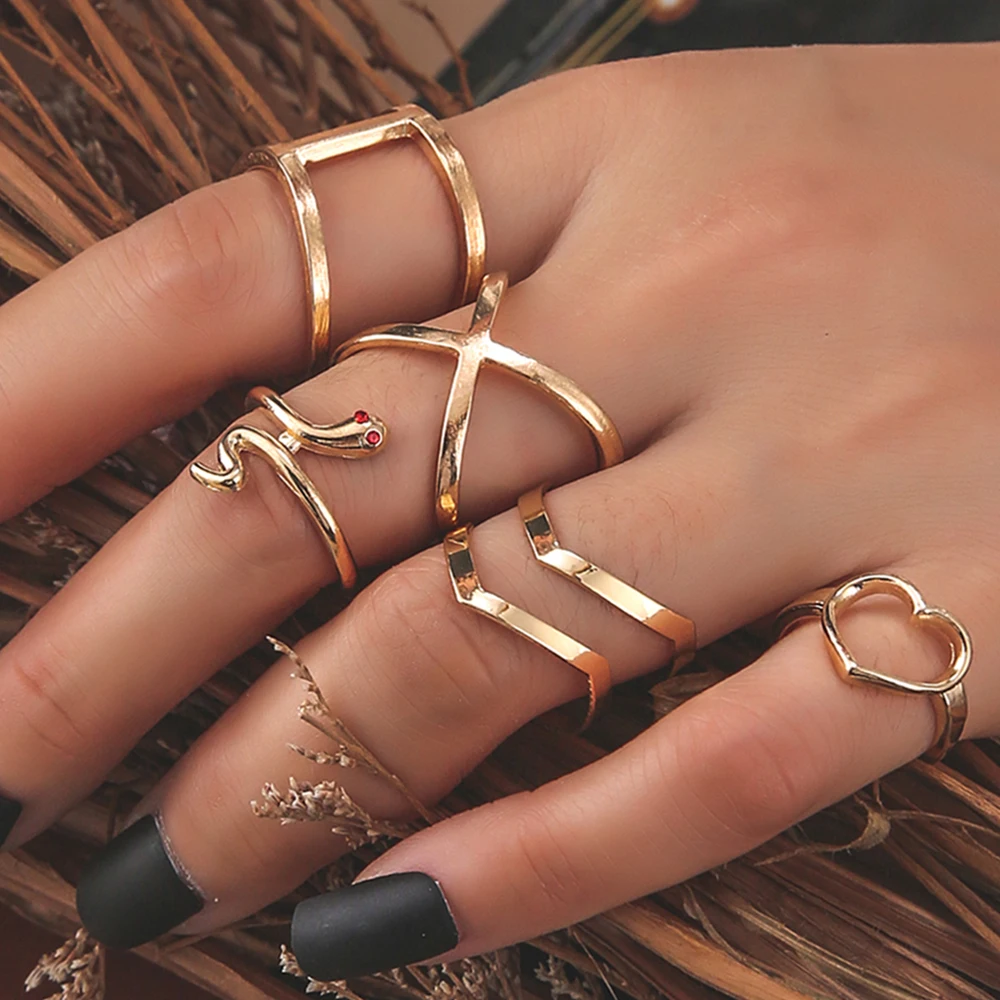 Женские кольца на костяшки Миди, винтажные богемные кольца золотого цвета с сердечком и бабочкой, с кристаллом, геометрические, 2021
