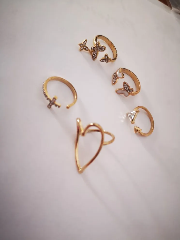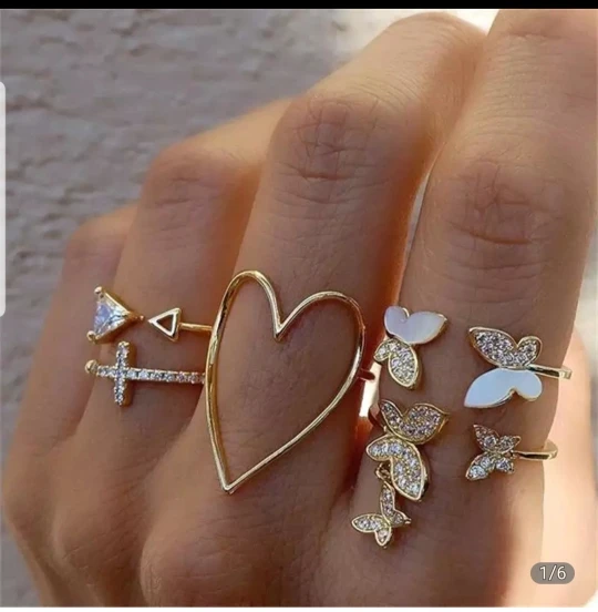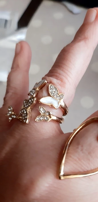 Дешевка. Заказывала из-за кольца сердечком. Оно намного меньше, чем на фото, очень узкое и маленький размер, на 16,5 где-то. Кольца с камнями вообще фигня: камни вклеены не ровно. Металл очень странный, как будто фольгой обклеили и лаком покрыли: всё бугрится и пузырится. Думаю, облезет сразу. Полное разочарование