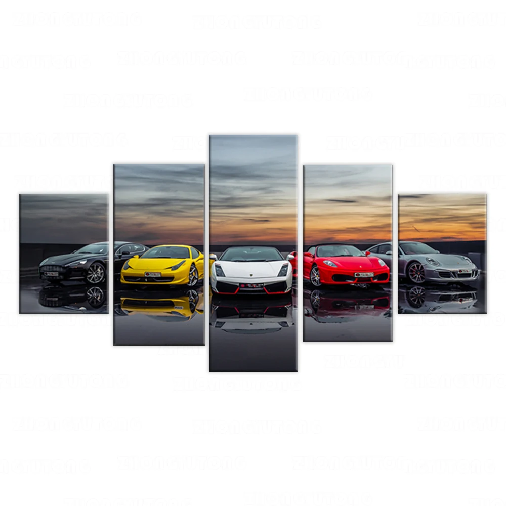 Картина на холсте с 5 панелями роскошные автомобили Порше 911 подвесные картины модульная Настенная картина для мальчиков каркас плакаты и принты