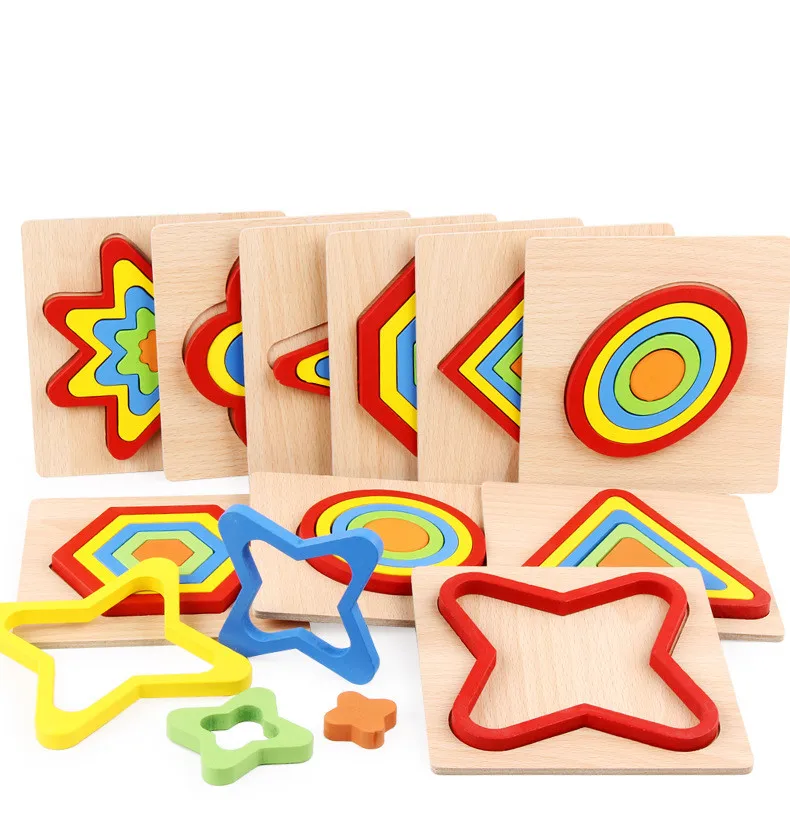 Деревянная геометрическая форма сделай сам, креативный 3D пазл, детская развивающая игрушка Монтессори, игра, головоломка, познавательная доска, игрушки
