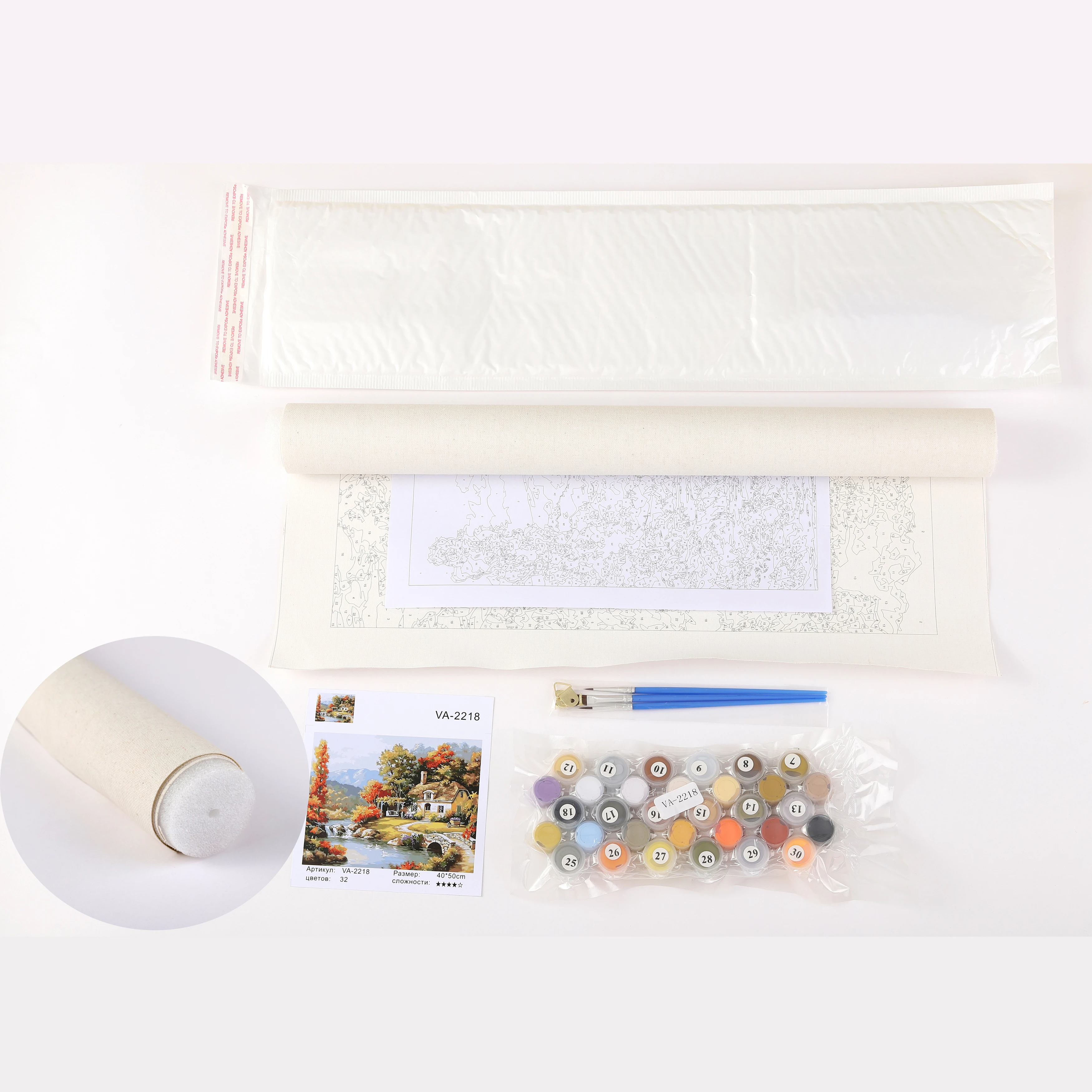 Размер: 40 × 50 см Рамка: без рамки; Рамка «сделай сам» Упаковка: свернут в пузырчатый пакет Доступно: Да Что внутри: Льняной холст 1 шт. 3 щетки 1 набор акриловых красок 1 шт. инструкция Вешалка Винты Не Законченная картина, вам нужно закончить самостоятельно