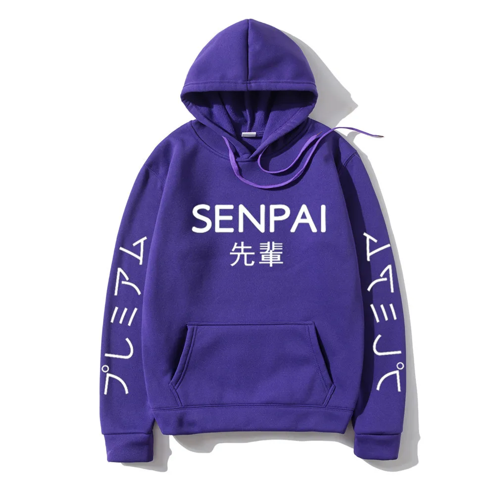 Новые Зимние флисовые мужские толстовки с принтом в стиле аниме Senpai, свитшоты для мужчин и женщин, уличная одежда, забавная черная толстовка, Мужская зимняя одежда