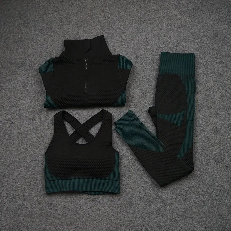 2021 женский костюм для йоги 2/3 шт, бесшовный костюм для йоги на молнии, спортивная одежда для занятий спортом, одежда для фитнеса, топ для фитнеса с длинными рукавами, комплект с высокой талией