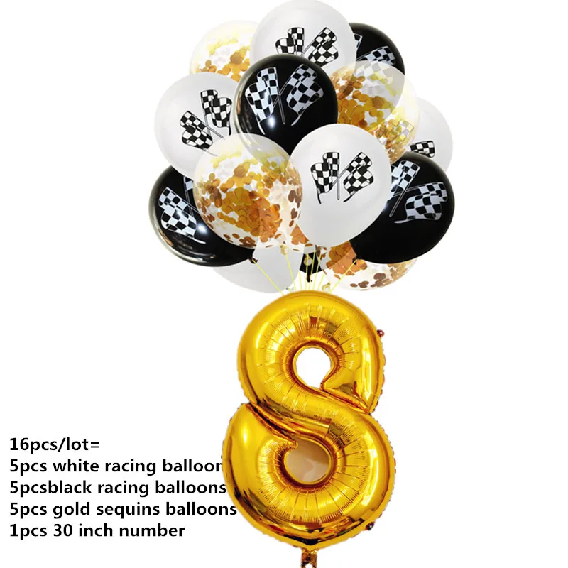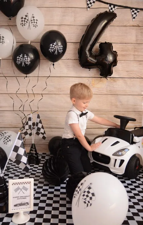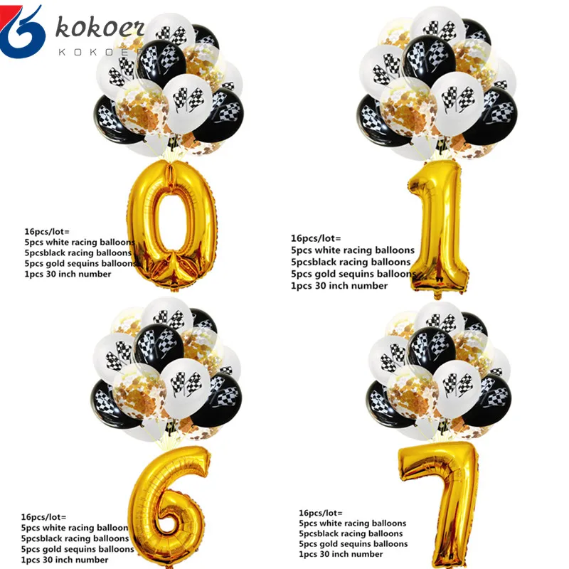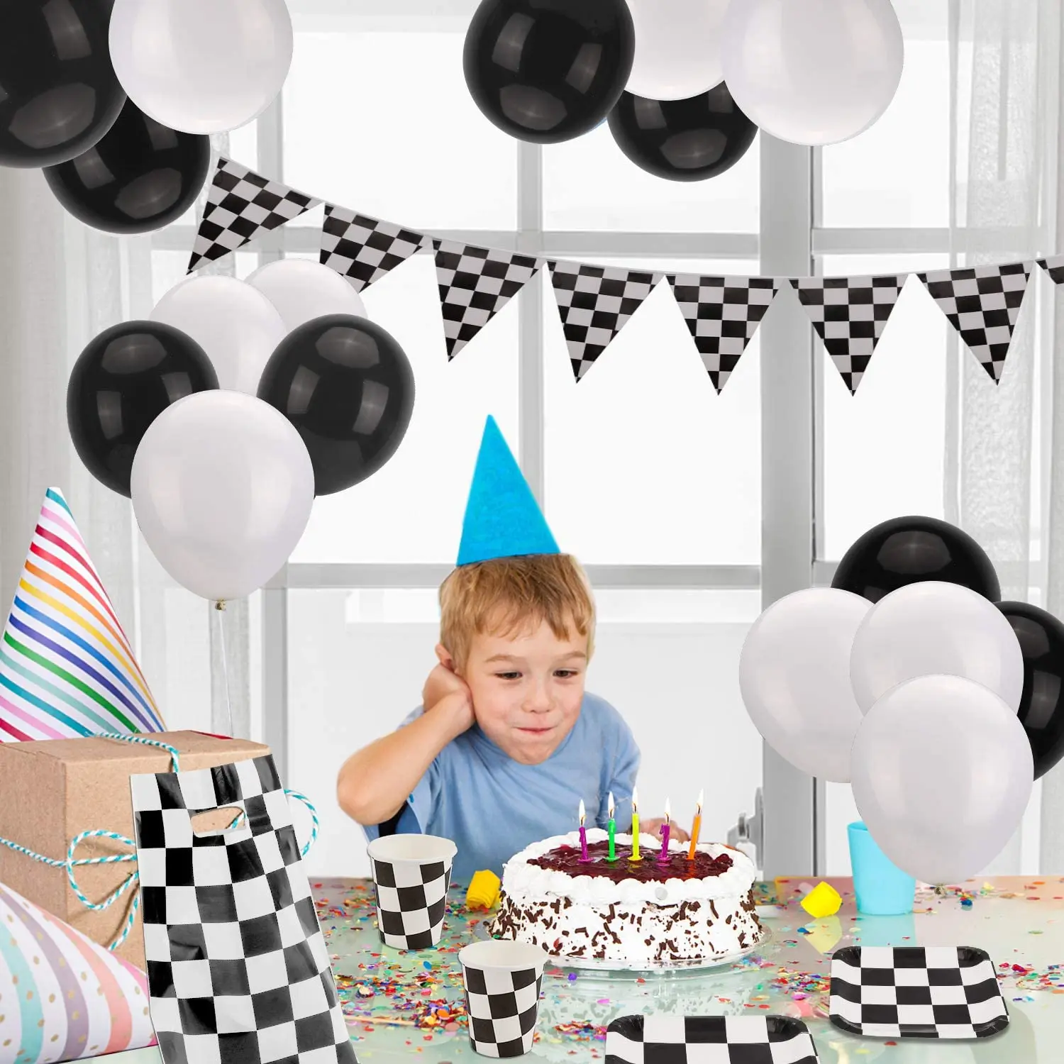 12 дюймов блестки черный, белый цвет Гоночный флаг воздушных шаров из латекса, с клетчатым узором, клипсы для воздушных шаров Baby Shower Декор гоночного автомобиля День рождения игрушки подарок