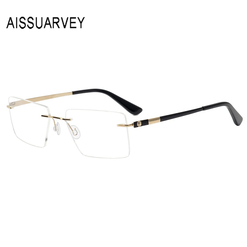 Очки мужские титановые без оправы, брендовые дизайнерские винтажные оптические очки по рецепту, в деловом стиле, черные золотые