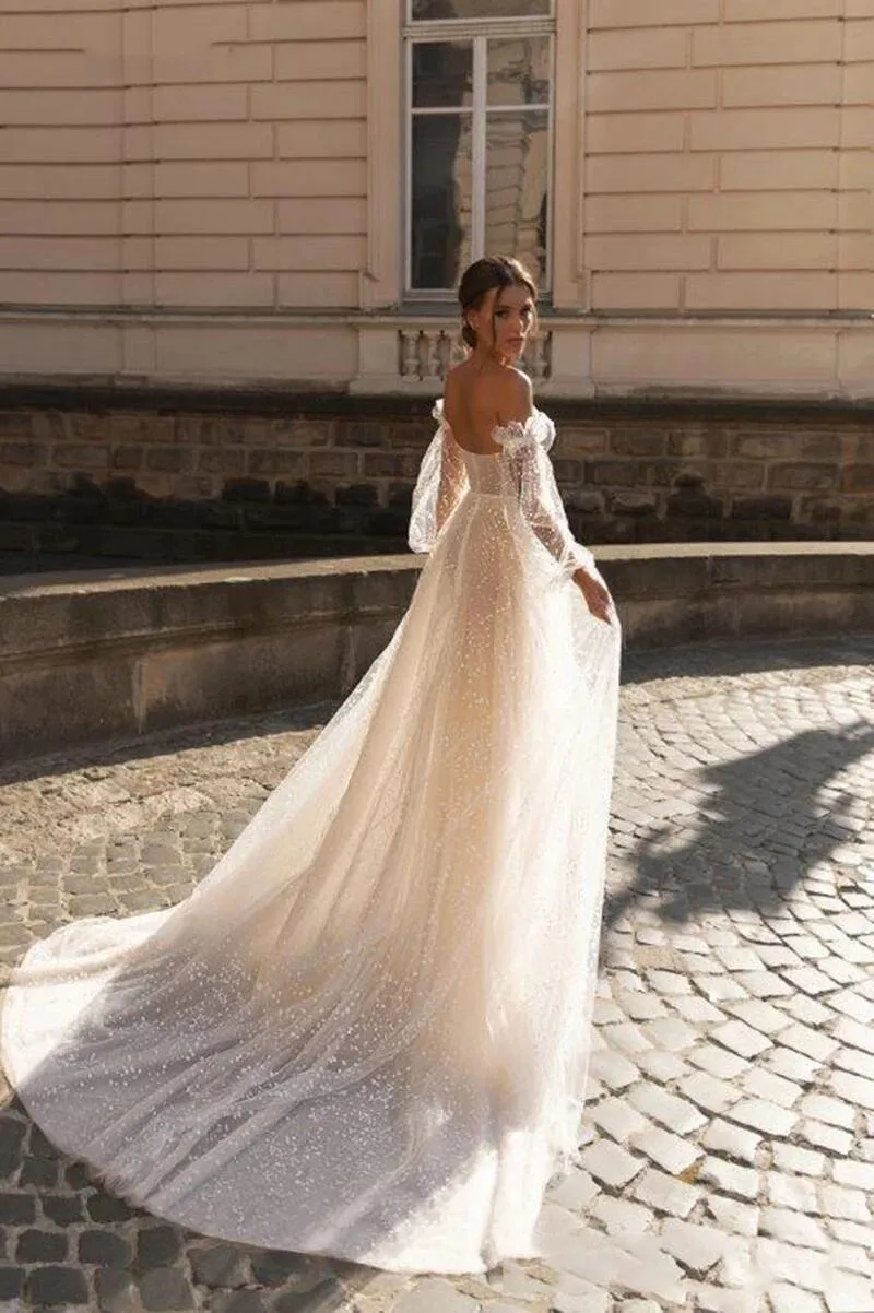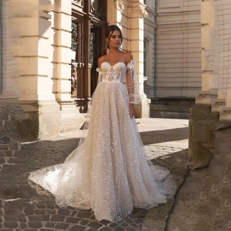Свадебное платье в стиле бохо, модель 2022 года, с пышными рукавами, с вырезом сердечком, свадебные платья с кружевной отделкой, свадебное платье для девочек