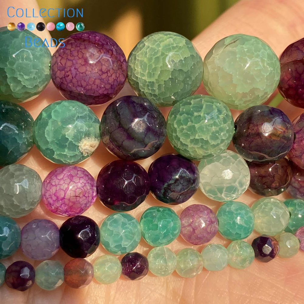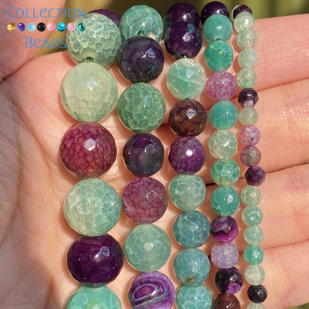 Натуральный граненый зеленый фиолетовый дракон искусственный камень Круглый бисер для изготовления ювелирных изделий 6-10 мм DIY Браслеты Аксессуары Оптовая продажа
