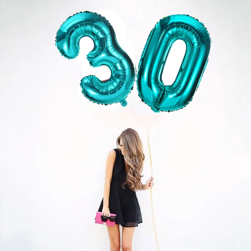 Шары из бирюзовой фольги в форме цифр, 32 дюйма, для украшения детвечерние дня рождения, большие цифровые шарики-гелиевый воздух