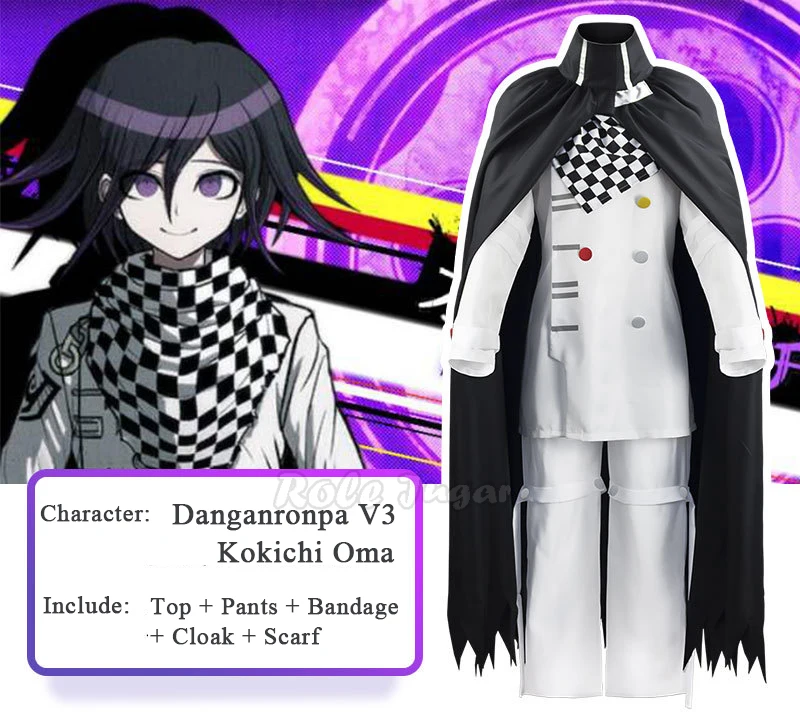 Костюм для косплея кокичи Ома из Danganronpa V3, полный комплект, шарф, плащ, униформа, костюм с париком для Хэллоуина, карнавала, C80C34