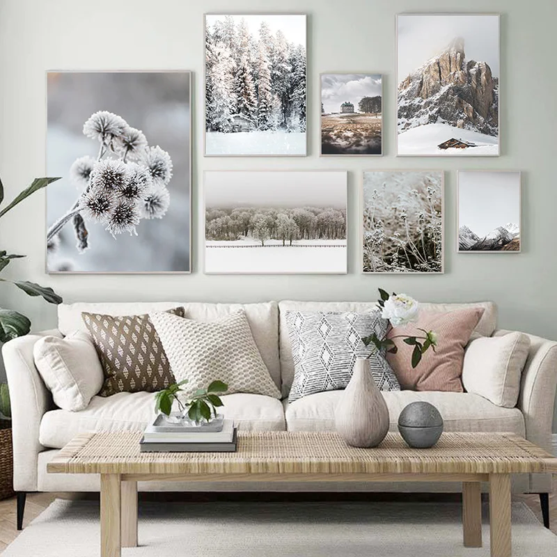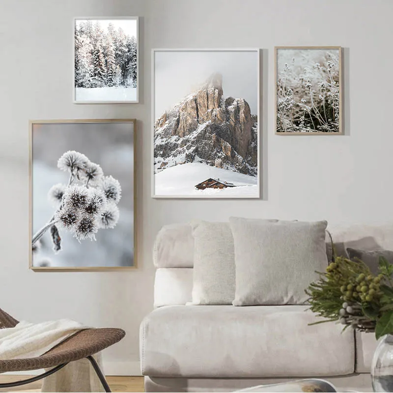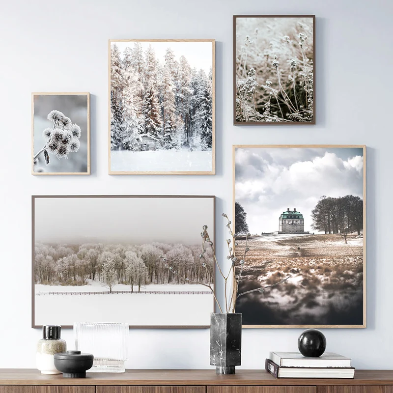 Скандинавский пейзаж, зимний пейзаж, холст, постер, горы, лес, настенная печать, ботаническое искусство, картина, скандинавский Декор для гостиной