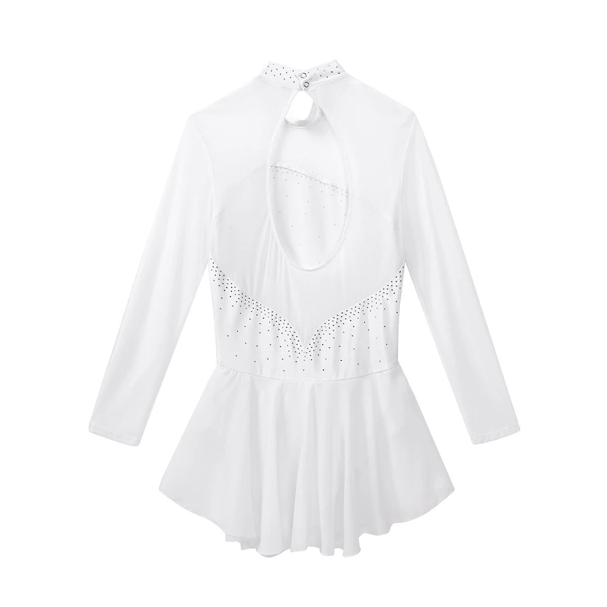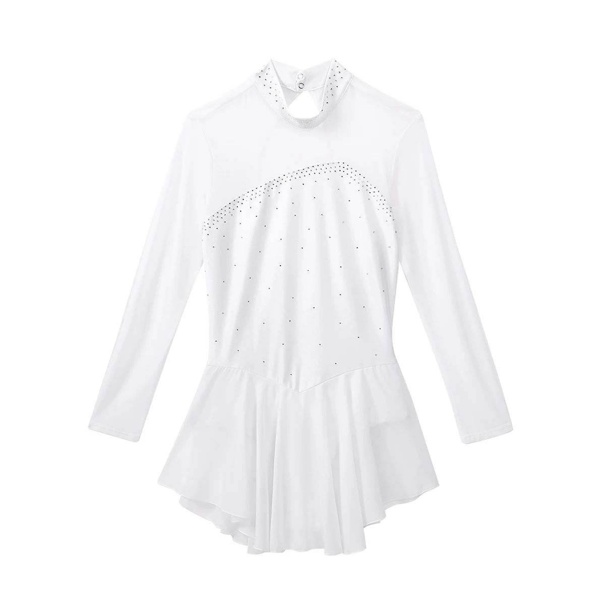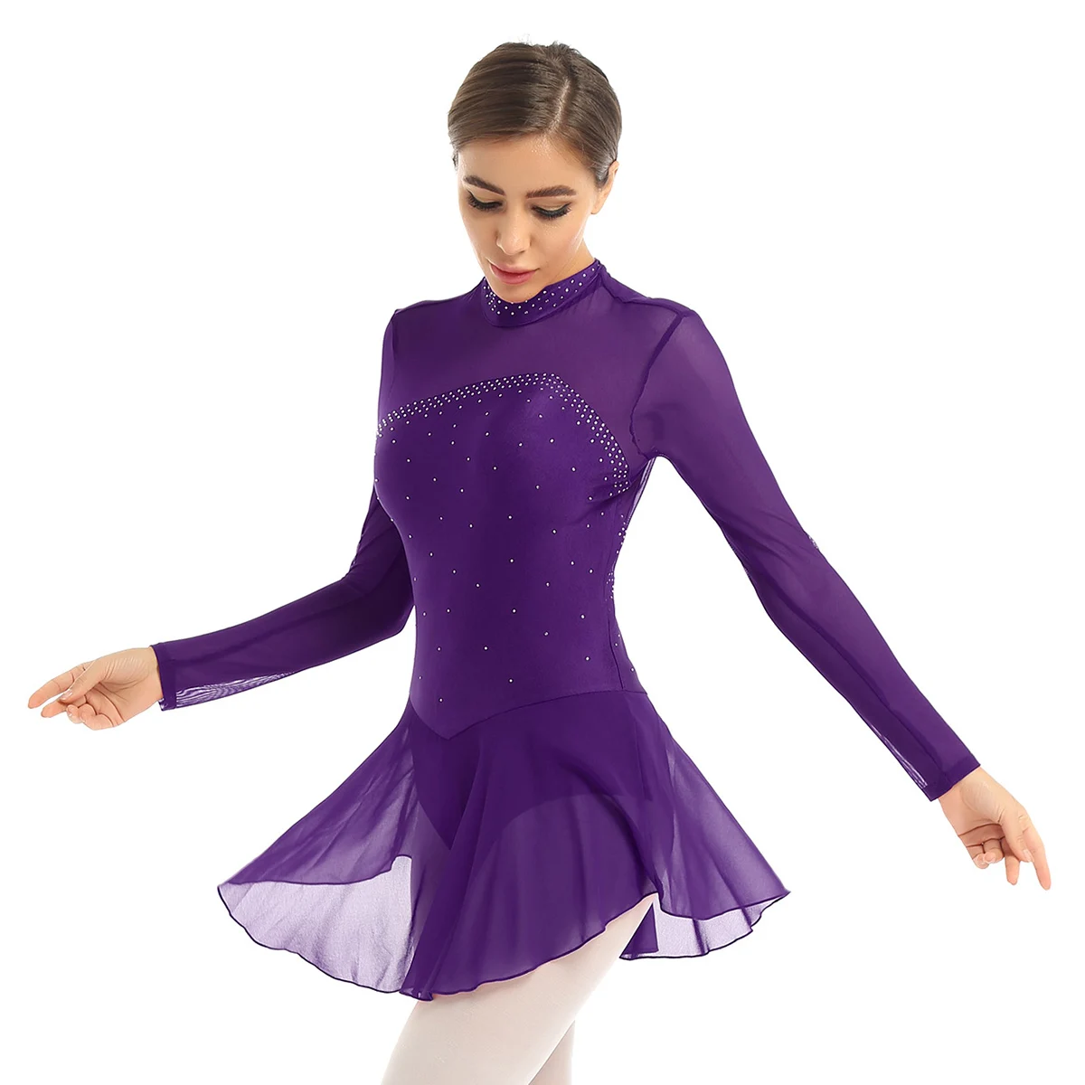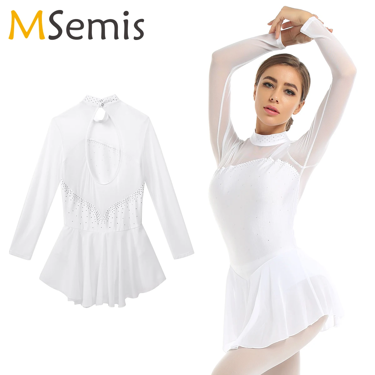 # S-XL женские взрослые блестящие стразы из прозрачной сетки с длинными рукавами и вырезом на спине, Фигурное катание на роликах, балетное танцевальное трико
