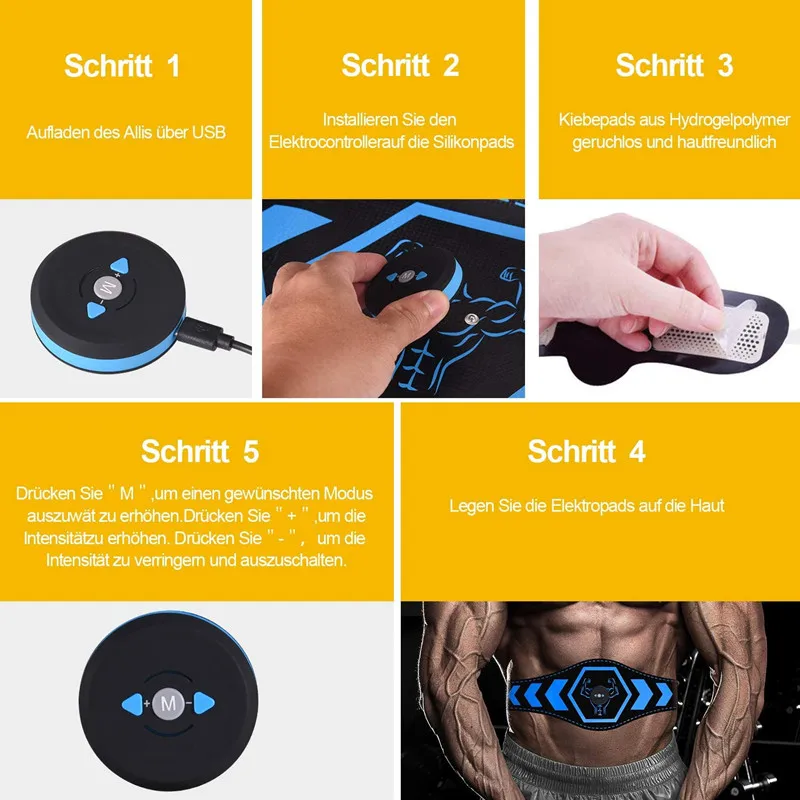 6 режимов и 10 частот тока:Стимулятор мышц EMS имеет 6 режимов и 10 уровней частоты тока для ежедневных упражнений.Режим 1-2 ток НИЗКИЙ, он предназначен для сжигания жира;3-4 Режим тока умеренный, лучше для роста мышц;5-6 модный ток сильный, он обеспечивает сильные упругие движения для укрепления мышц вашего тела.Вы увидите результаты на вашем abs не более чем через 3 месяца.USB-кабель 3-в-1 эффективная зарядка: отличается от других продавцов,Брюшной пояс поддерживает зарядку USB 3-в-1.Его можно заряжать с помощью безопасного и легкого подключения от ноутбука, мобильного аккумулятора, портативного зарядного устройства, автомобильного блока питания.При полной зарядке (время зарядки составляет около 30 минут), используется для около 3 раз (время работы-20 минут).Около 20-30 минут/день:Соответствует бегу 1500 м, 60 минутам приседаний, 30 минутам свободного плавания,Мы рекомендуем вам улучшить свой рацион и содержать организм чистым без пота.