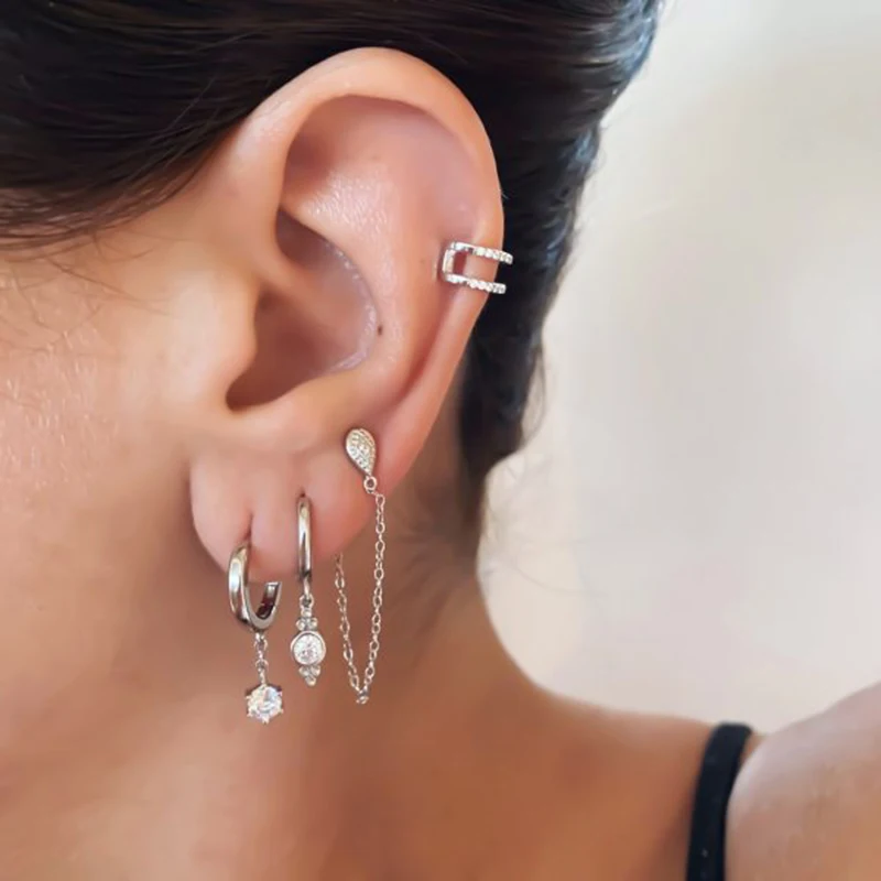Oorbellen zilver 925 тассель цепь квадратный Циркон пирсинг серьги ...