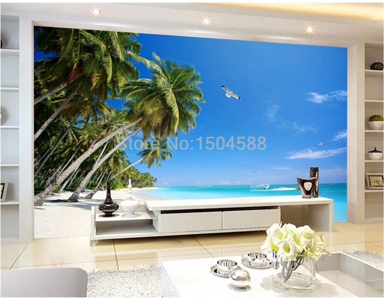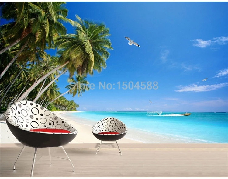 Пользовательские фотообои, современный модный морской пейзаж, кокосовое дерево, пляж, Морская Чайка, Настенный декор, обои