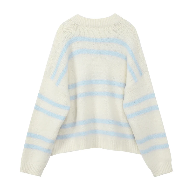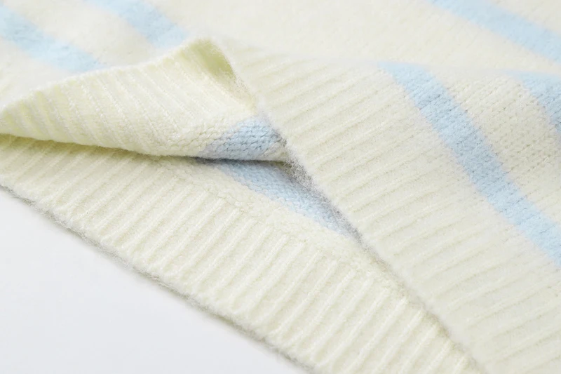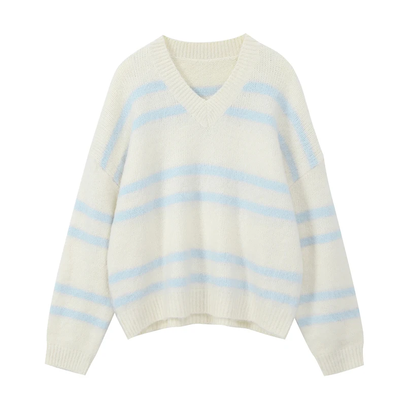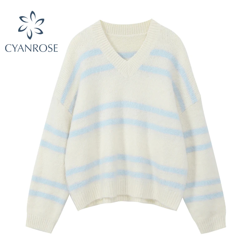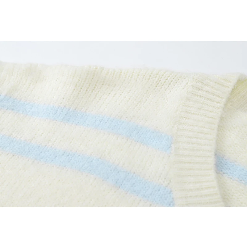 Женский винтажный трикотажный свитер в полоску, абрикосовый пуловер с V-образным вырезом, хлопковые топы в Корейском стиле Харадзюку, элегантная повседневная трикотажная одежда, 2021
