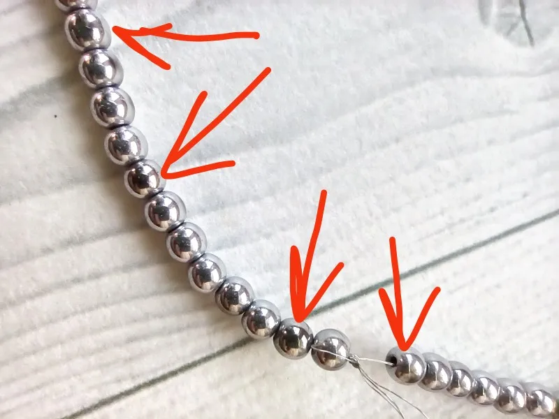 гематит ужасный!!! прокрас бусин неравномерный, как-будто из баллончика красили. много непрокрасов!!! первое фото - макросъёмка, там видно, что все бусины как-бы стрев крапинку, покрашены очень плохо!!! стрелочками указала места, где краска вообще отсутствует, просто незакрашенные пятна!