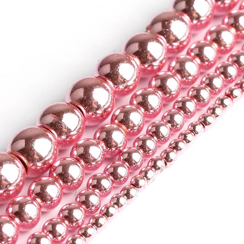 Круглые бусины из гематита, с родиевый розовый Золотой покрытием, 15 дюймов, 2346810 мм