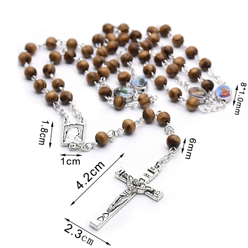 Ручная работа, деревянные круглые бусины, искусственное ожерелье, подвеска в виде Креста для унисекс, новые ранние ювелирные изделия, подарок для матери, горячая Распродажа