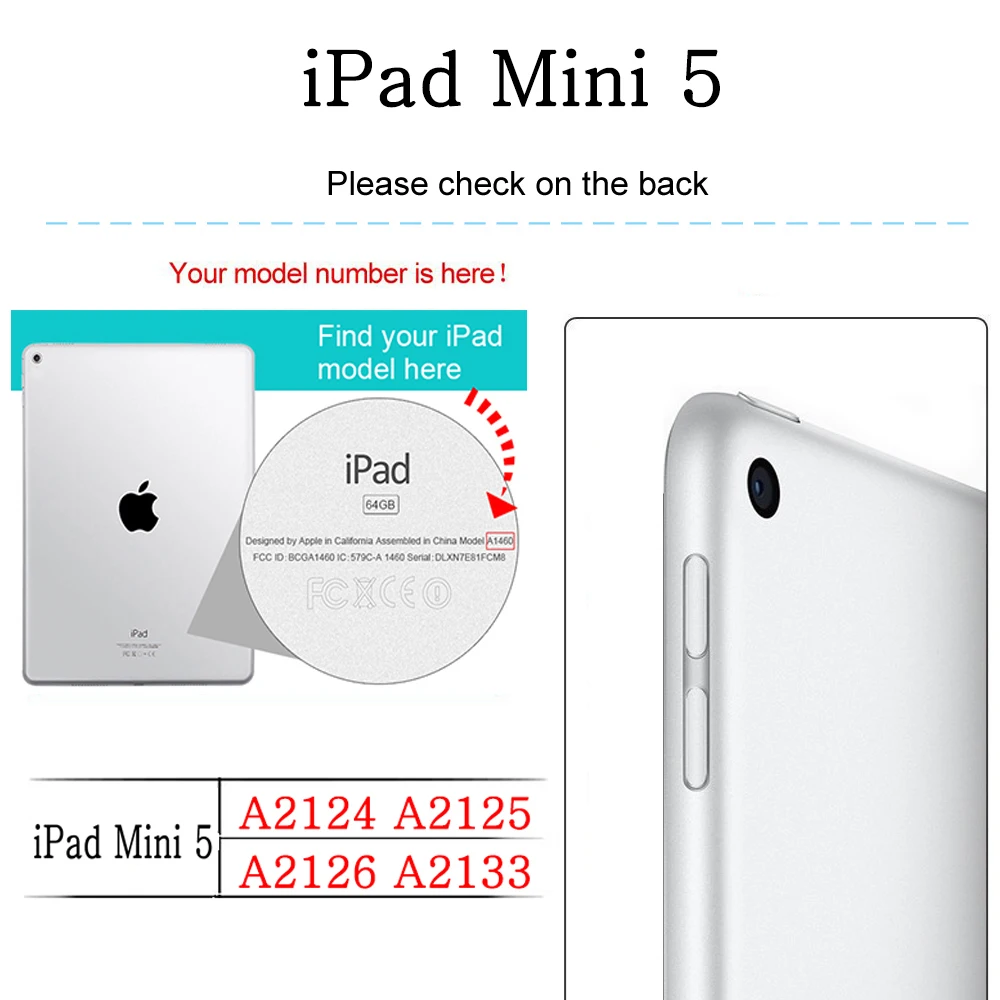 Умный чехол для iPad Mini 5, мягкий кожаный чехол для iPad mini 1 2 3 7,9 дюйма, iPad Mini 2019