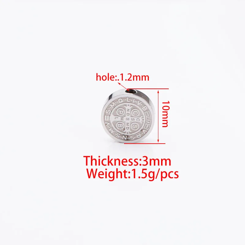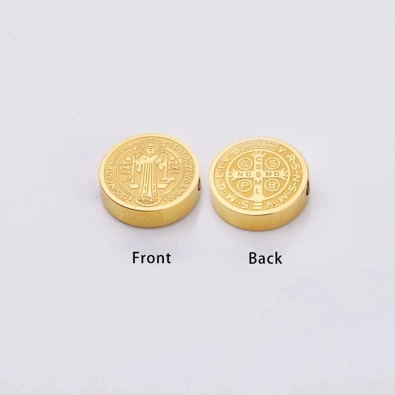 100% Нержавеющаясталь медаль Святого Бенедикта с очаровательной бусинкой золотосеребристый цвет металла Сан-шарик полированный оптовая продажа 20 штук
