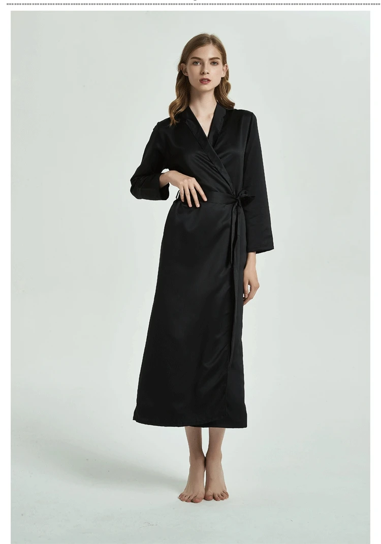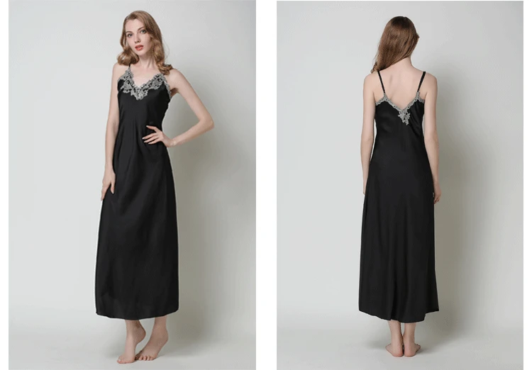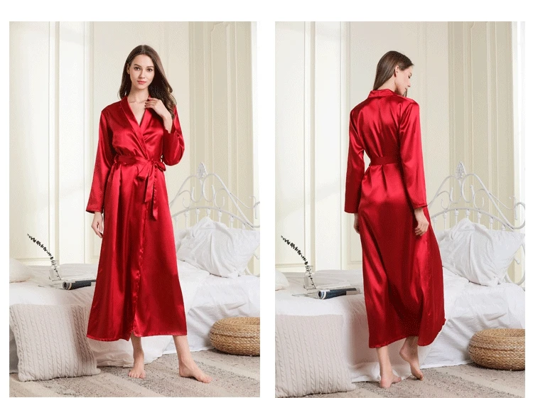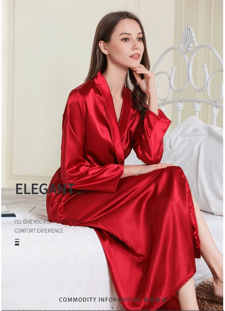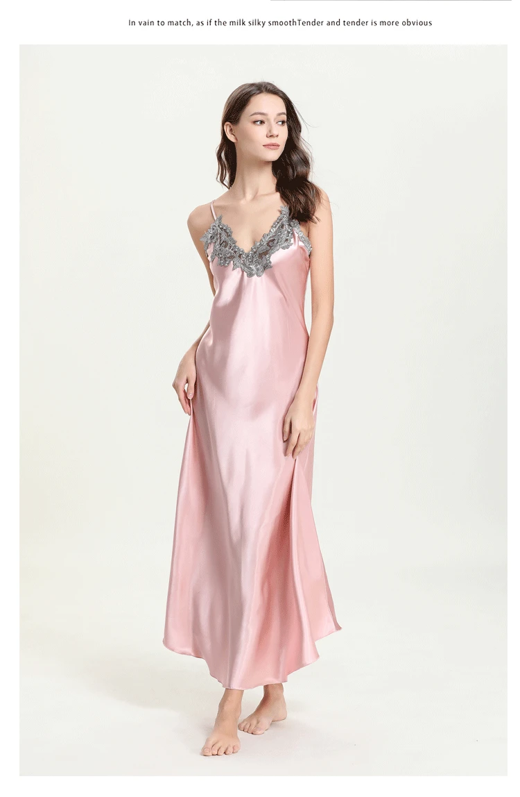 Шелковая пижама Женская кружевная Сексуальная Новинка ночная рубашка с V-образным вырезом и длинными подтяжками однотонный халат ночная рубашка с завязкой халат домашняя одежда