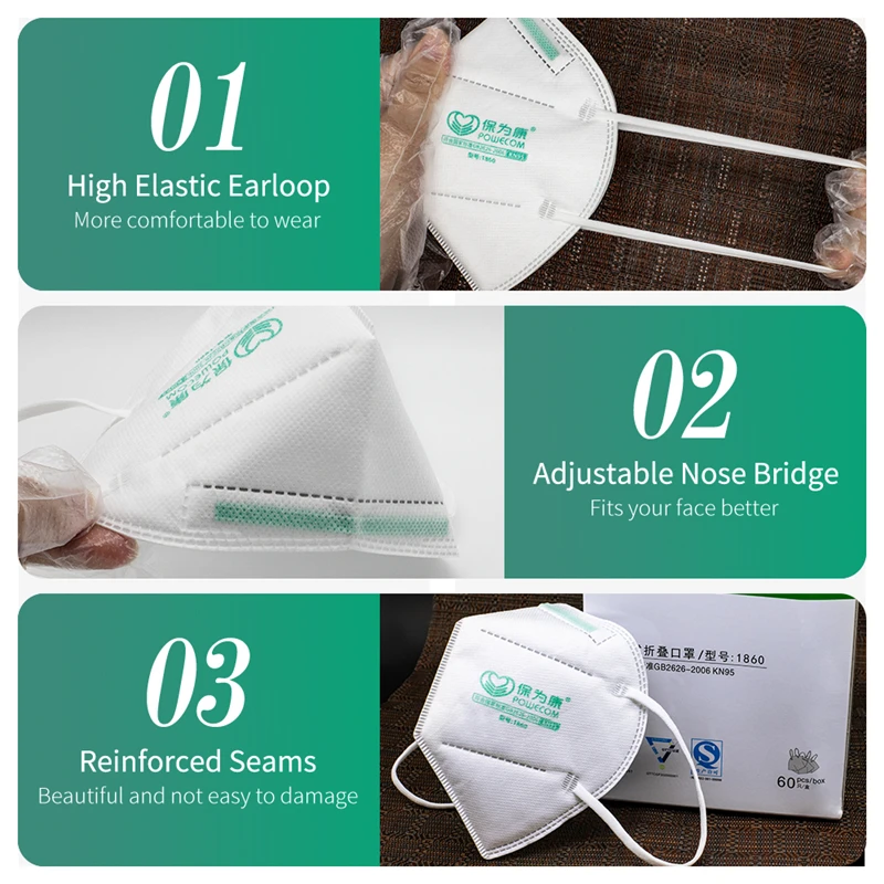 Маски POWECOM FFP2 для взрослых, 10 шт., маски KN95, нетканые пылезащитные защитные маски, дышащая маска для рта с заушными петлями для мужчин и женщин