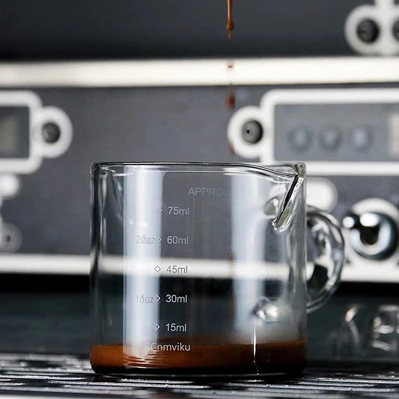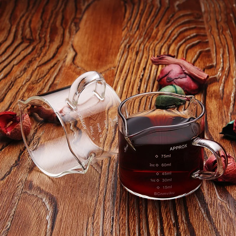 Стеклянная кофейная чашка с двойным Ротом, Градуированный стакан, прозрачная кружка для молока, завтрака, эспрессо, унции 75 мл, ручка со шкалой