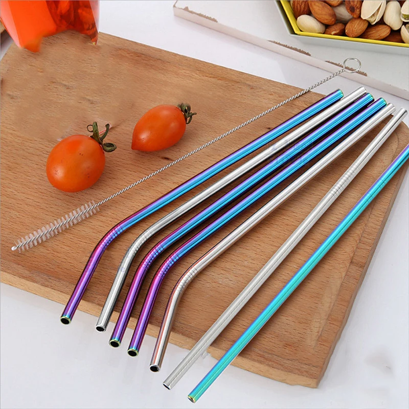 Аксессуар для вечерние, из нержавеющей стали многоразовые металлические трубочки для питья, 304, прочный, изогнутый, прямой, соломинка для напитков