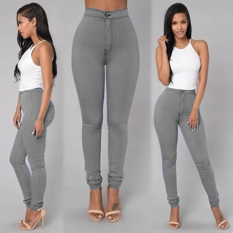 Женские обтягивающие эластичные леггинсы с высокой талией, большие размеры, женские повседневные узкие брюки, модные однотонные джинсы, белые, черные, синие брюки