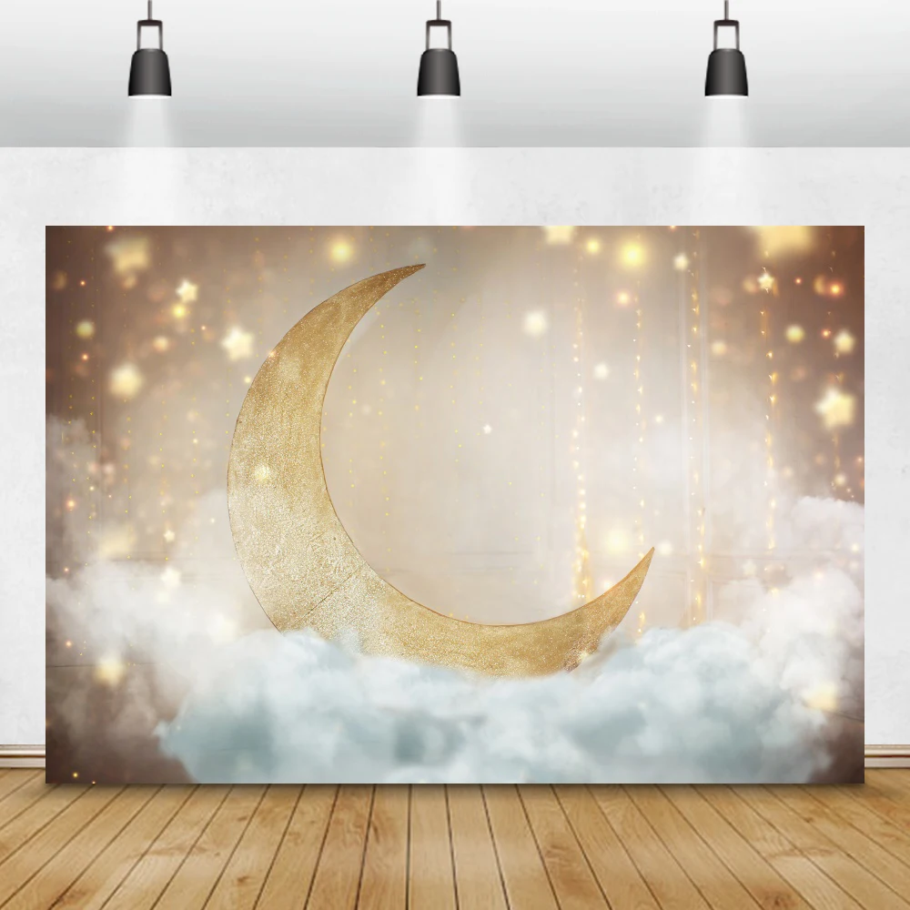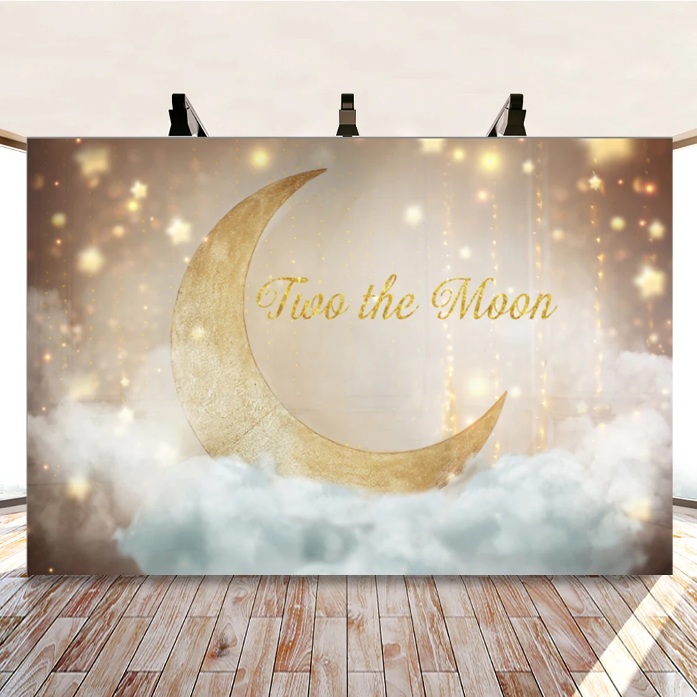 Laeacco портрет мечтательной два Луна детские День рождения фон для фотосъемки с аппликацией в виде Золотой Звезды светильник портретный фон для фотосъемки с Фоны аксессуары для фотостудий